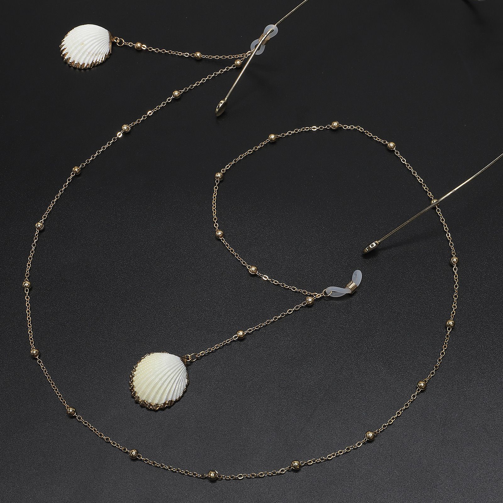 Металлическая нескользящая цепочка золотого цвета, с ракушкой и бусинами, для очков и масок GL662