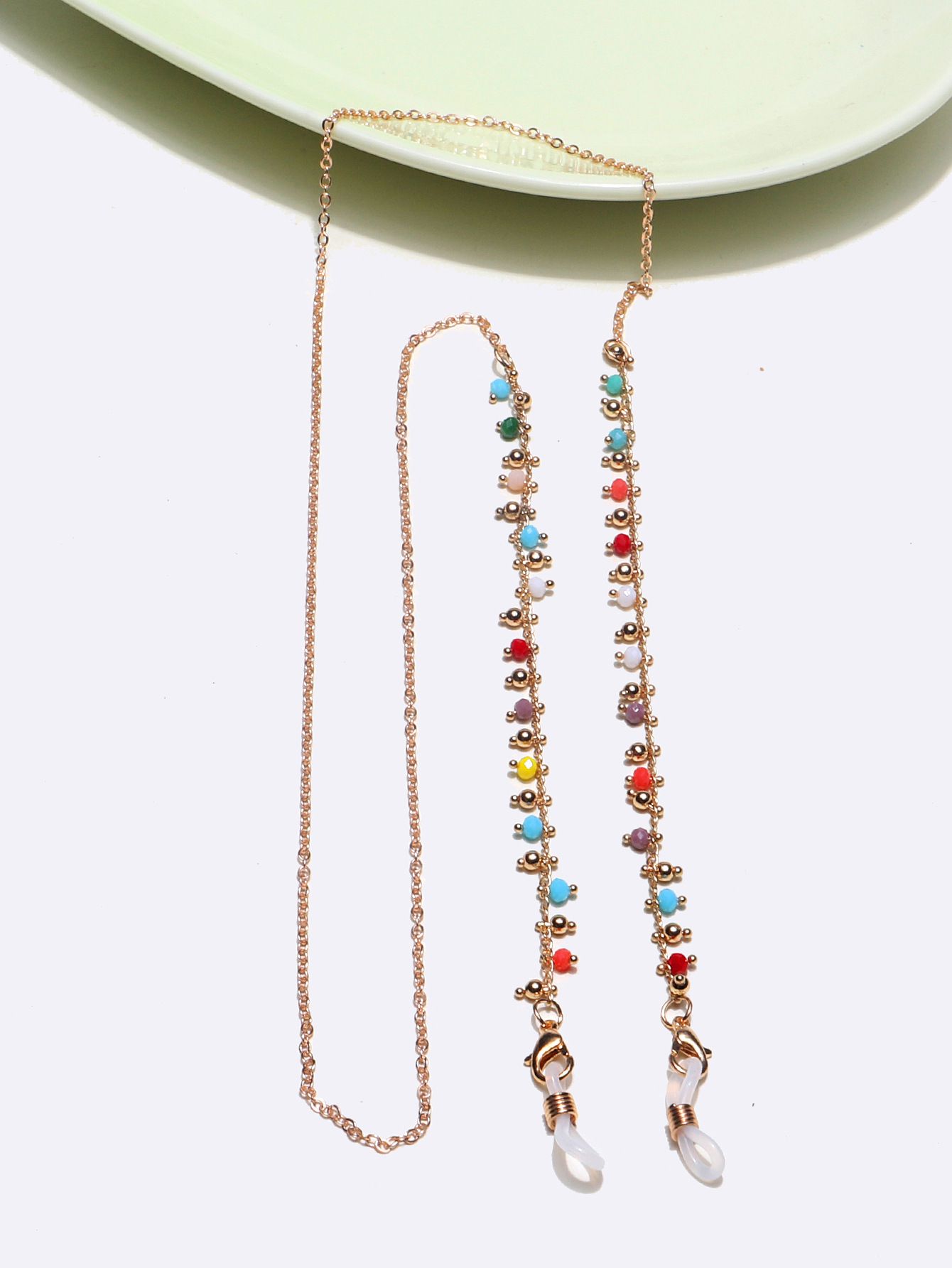 Металлическая нескользящая цепочка золотого цвета, с цветными бусинами, для очков и масок GL664
