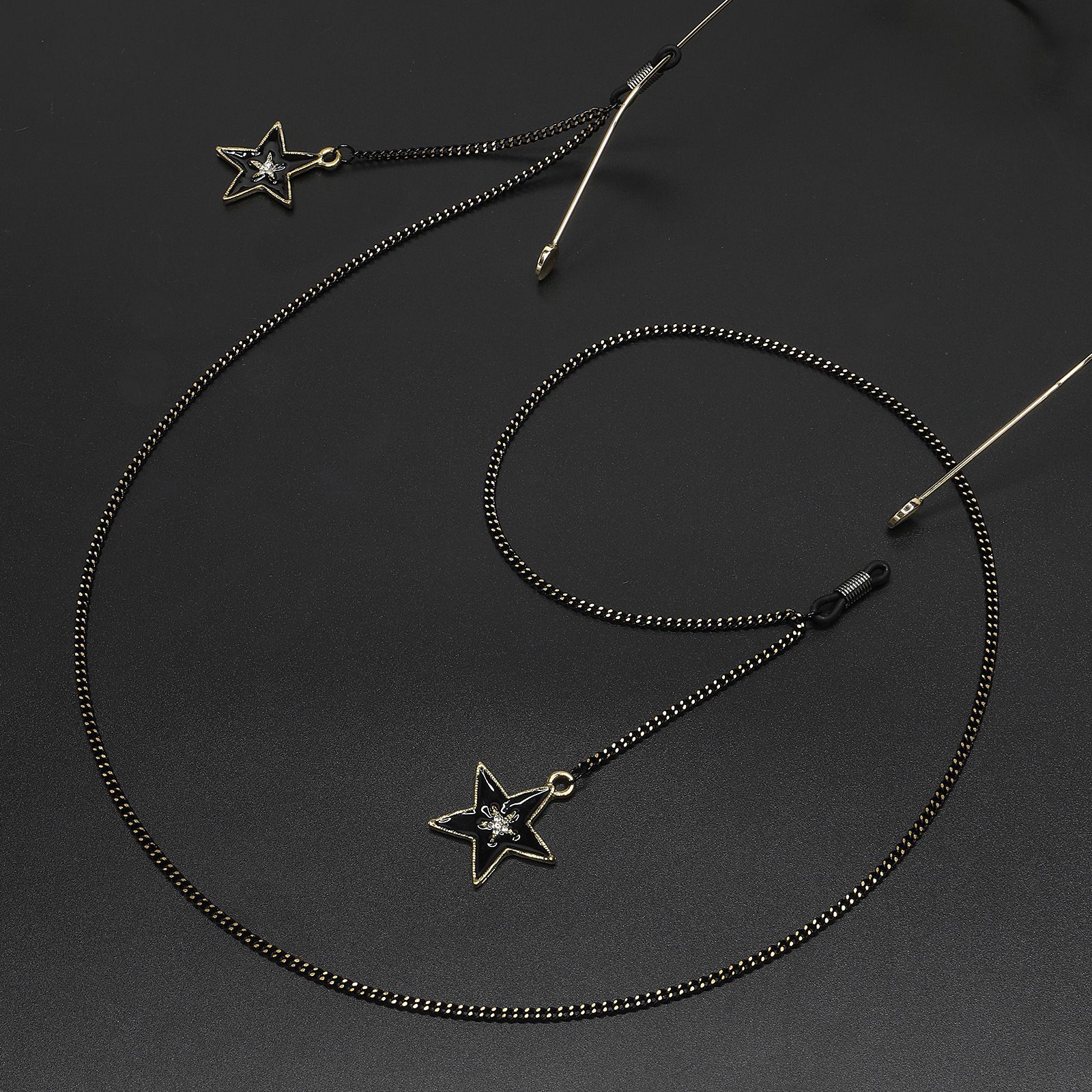 Металлическая нескользящая цепочка черного цвета, с подвеской звезда со стразами, для очков и масок GL676