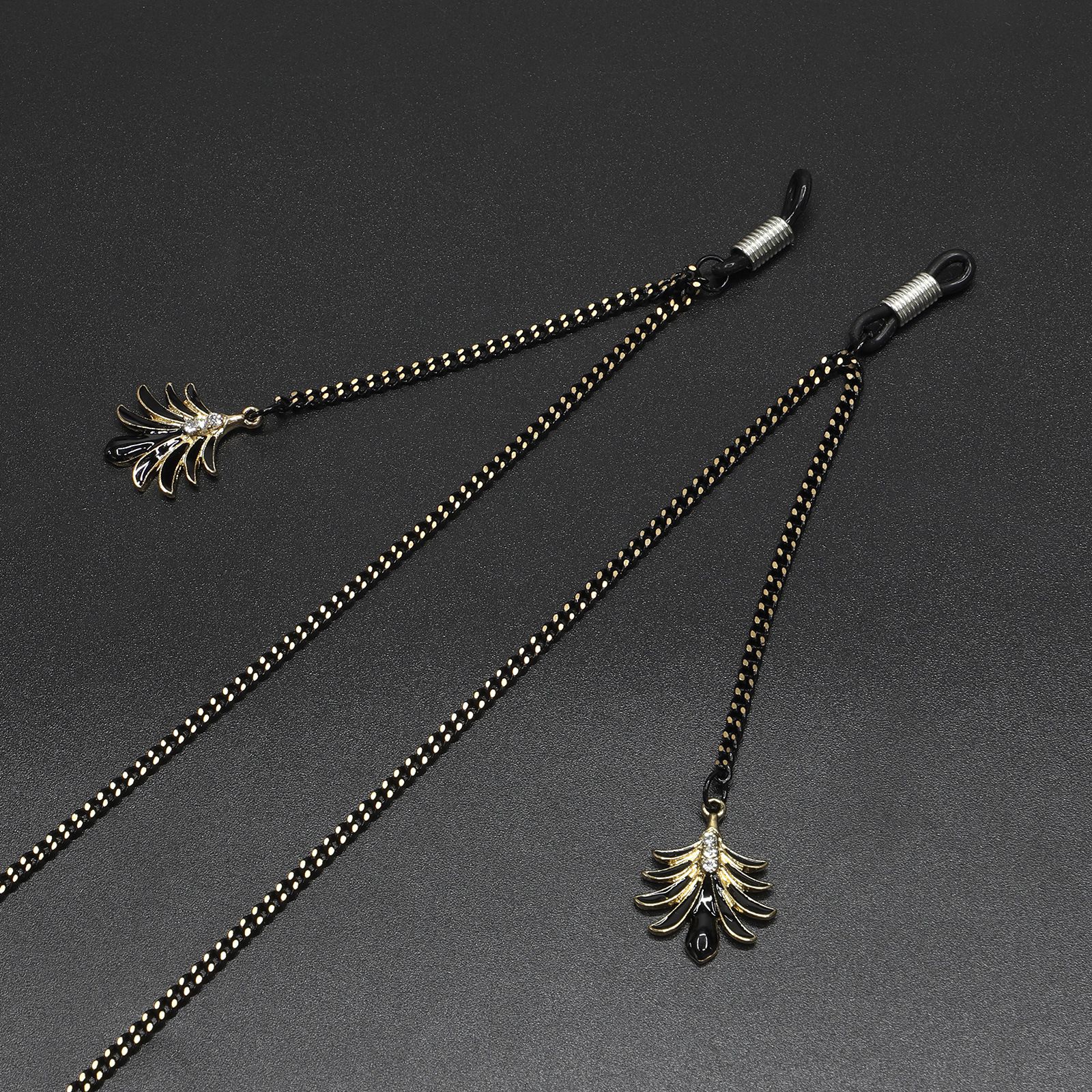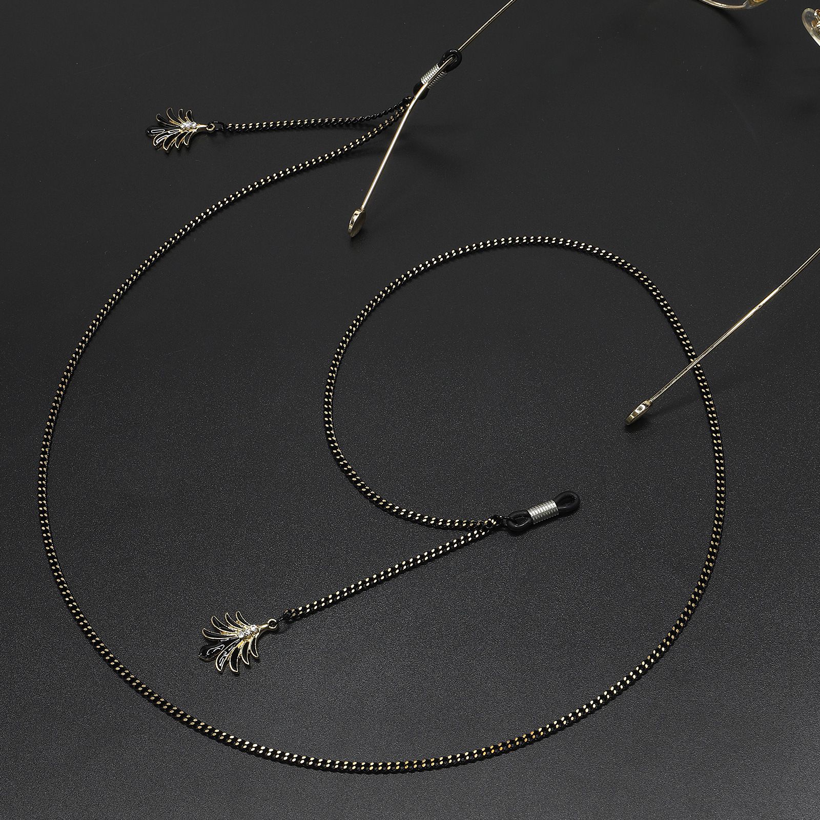 Металлическая нескользящая цепочка черного цвета, с подвеской павлинье перо, для очков и масок GL678