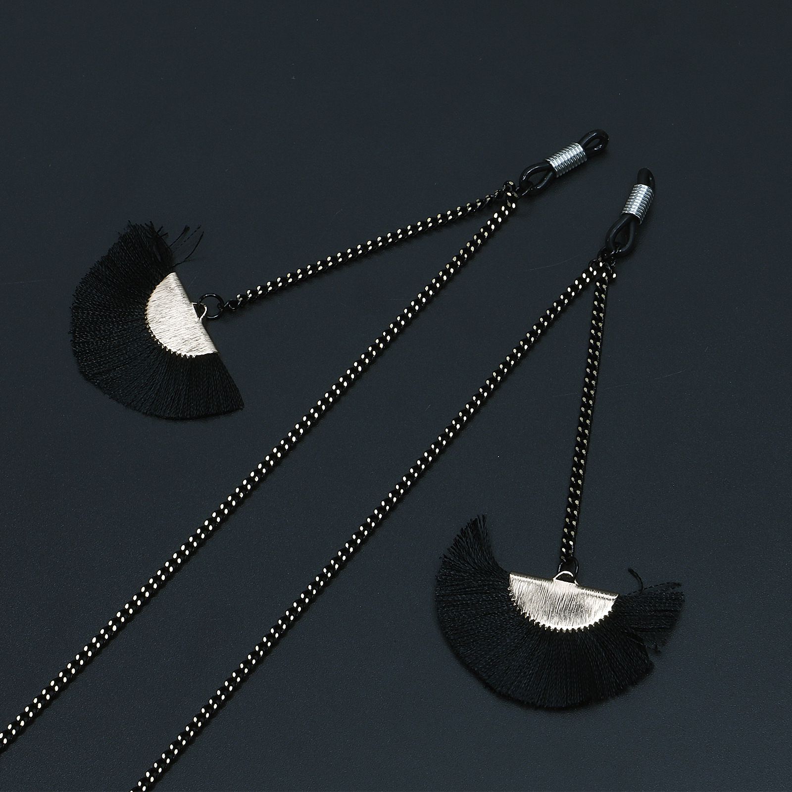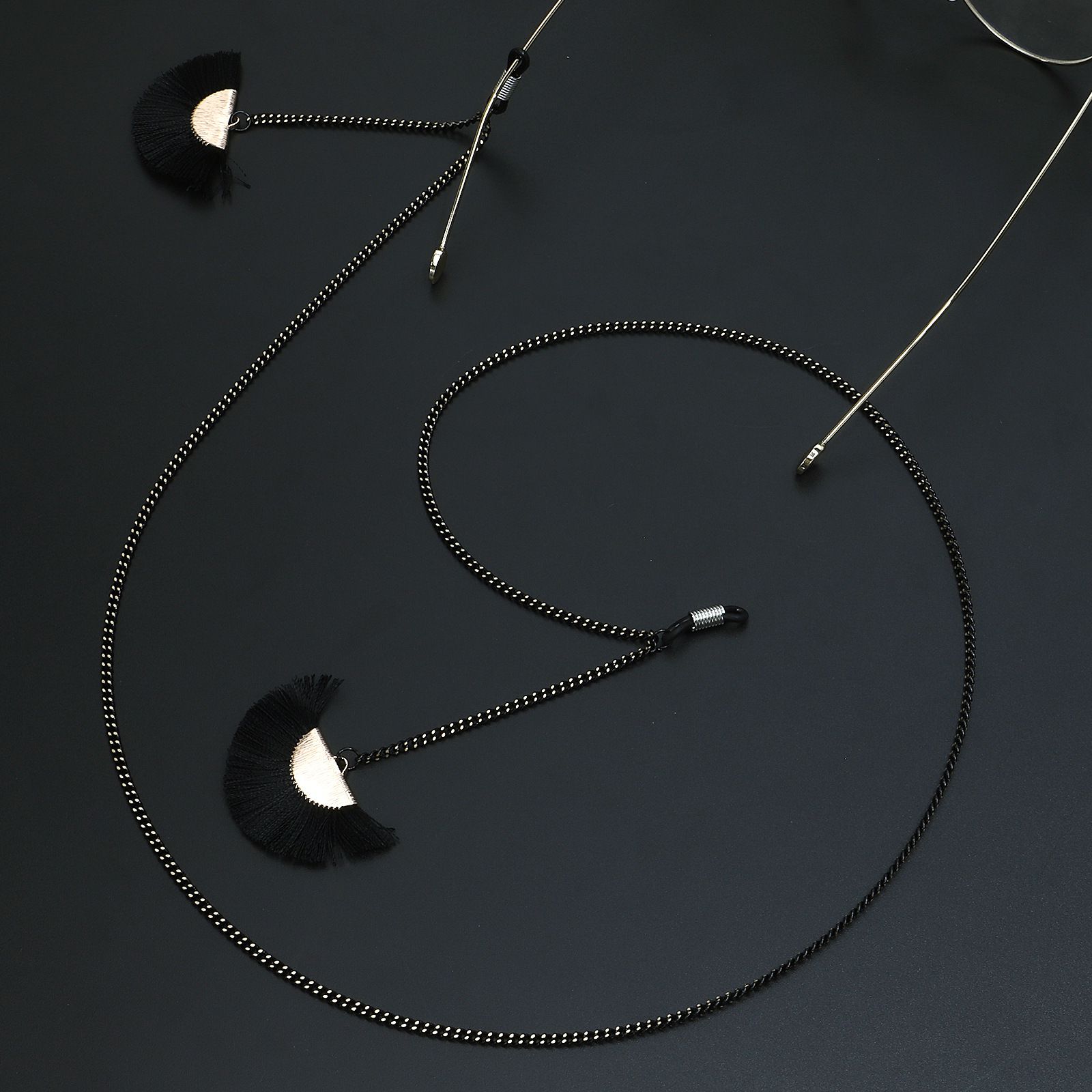 Металлическая нескользящая цепочка черного цвета, с подвеской веерообразная кисточка, для очков и масок GL708
