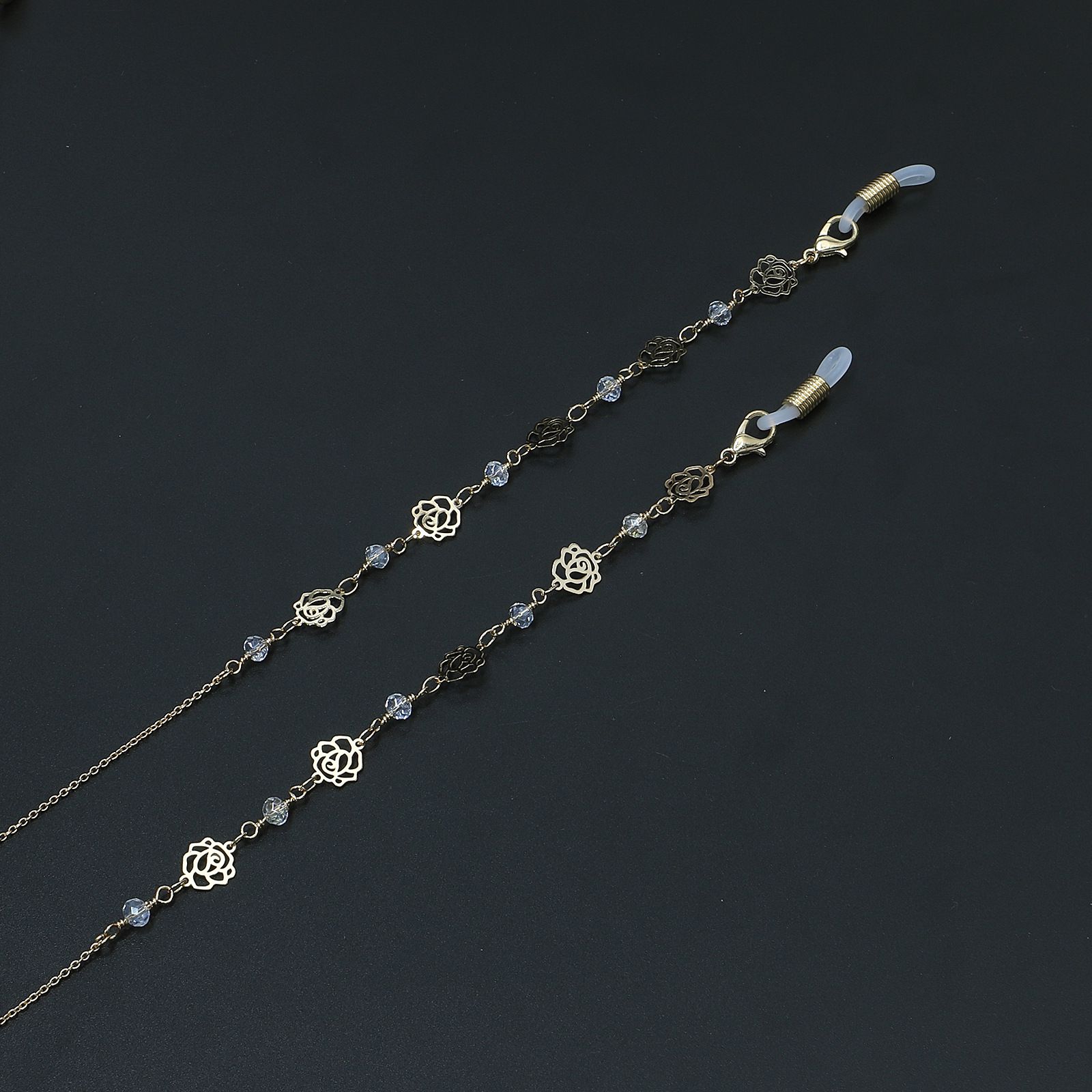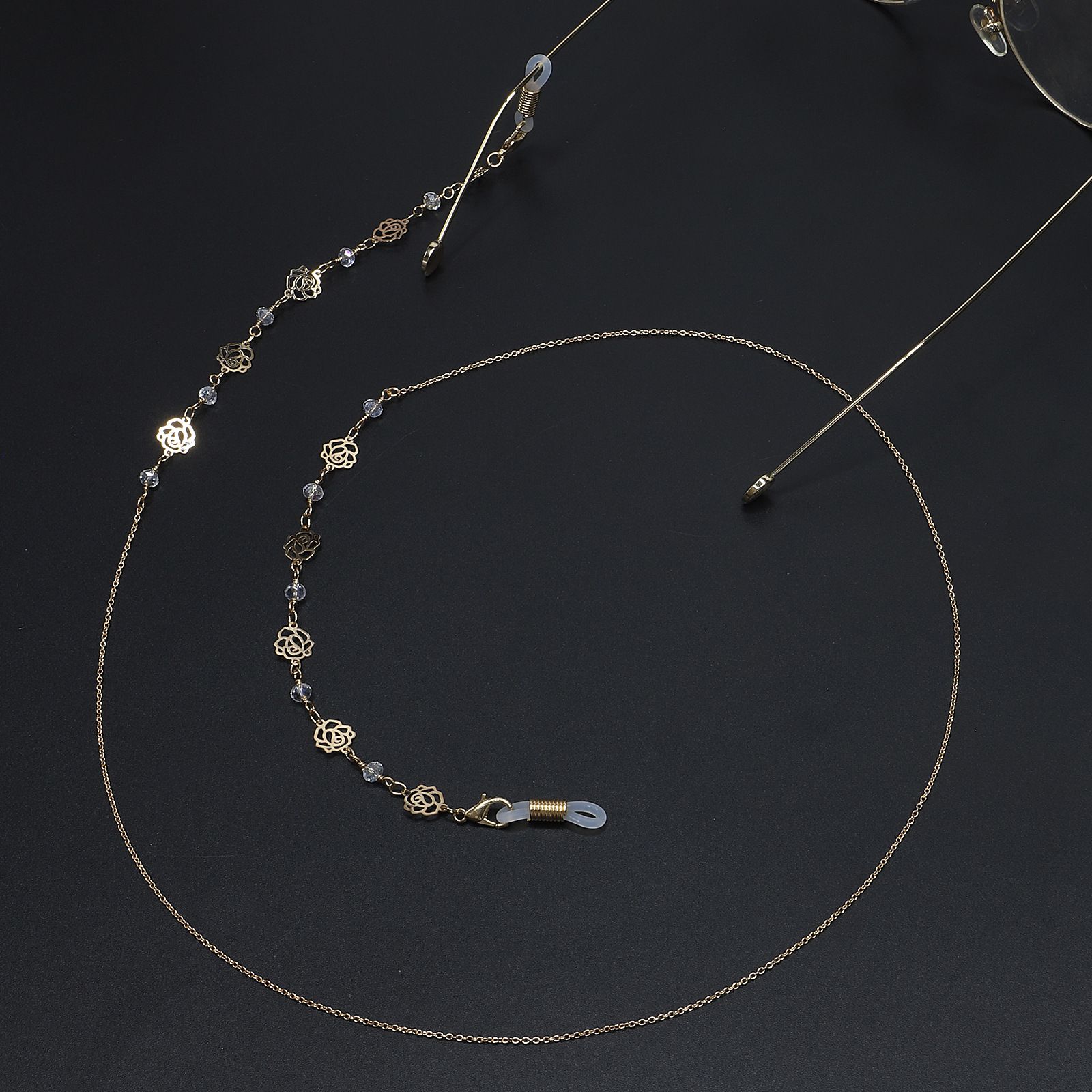 Металлическая нескользящая цепочка золотого цвета, с розой и кристаллами, для очков и масок GL715