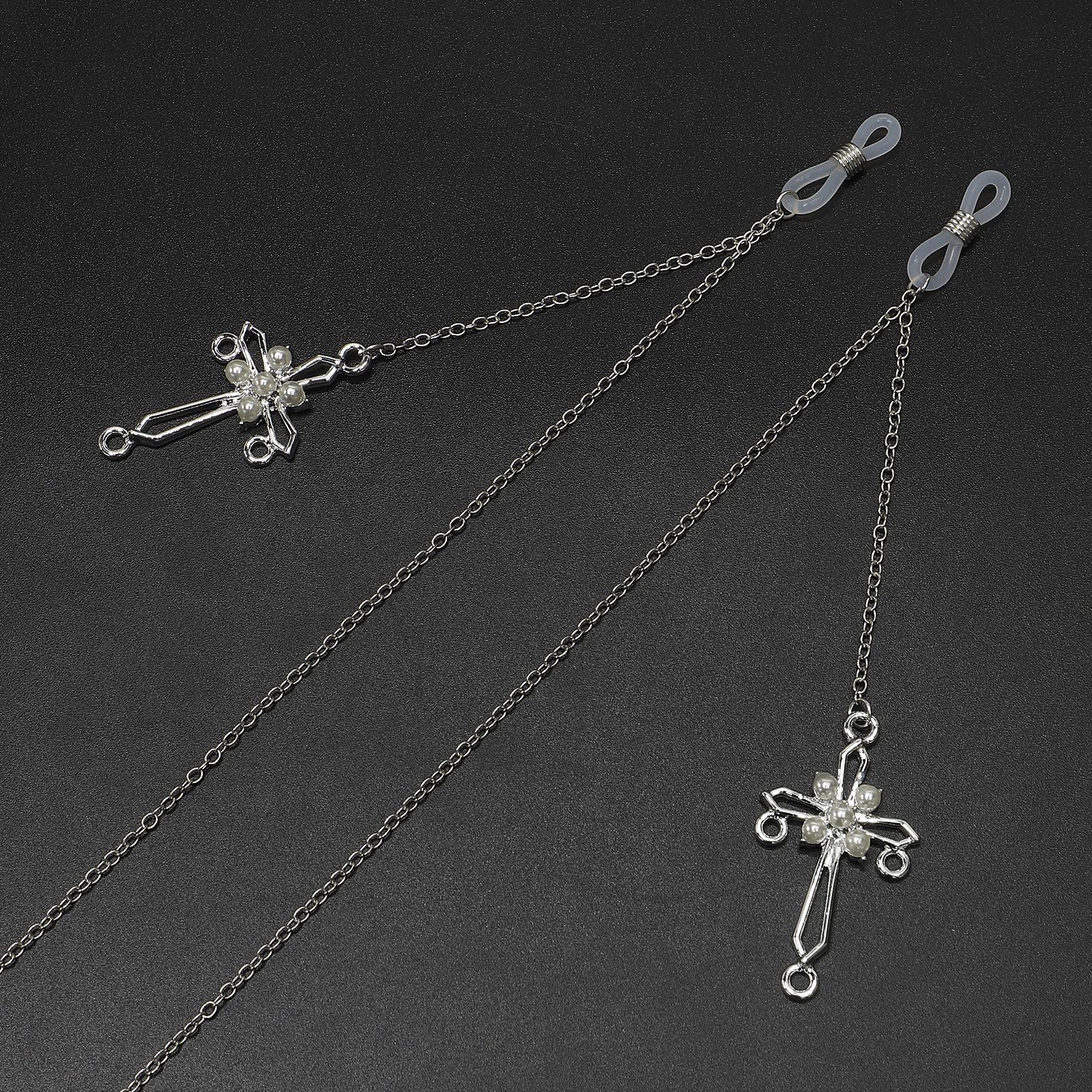 Металлическая нескользящая цепочка, с подвеской крестик с жемчугом, для очков и масок GL734