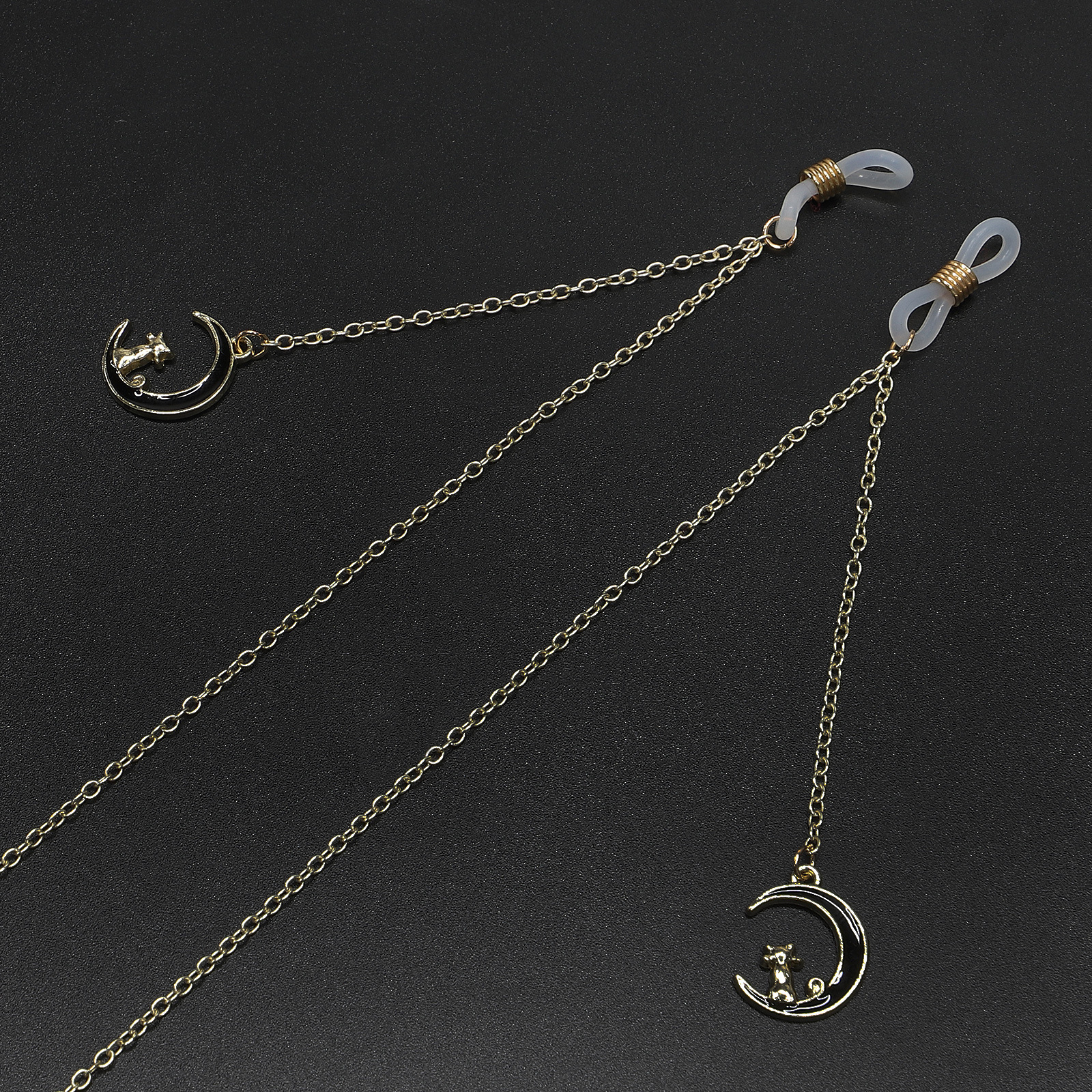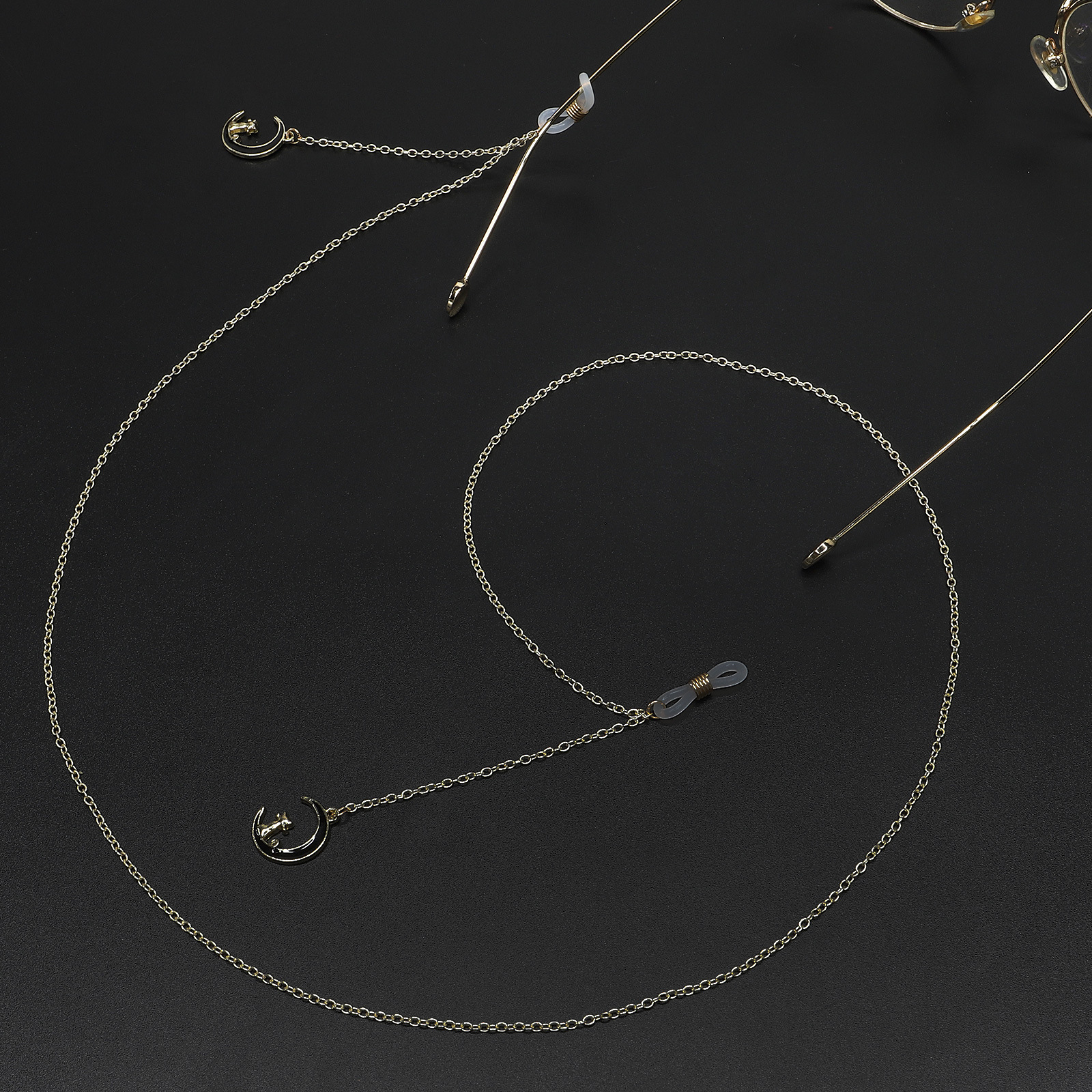 Металлическая нескользящая цепочка золотого цвета, с подвеской в виде луны и кошки, для очков и масок GL737