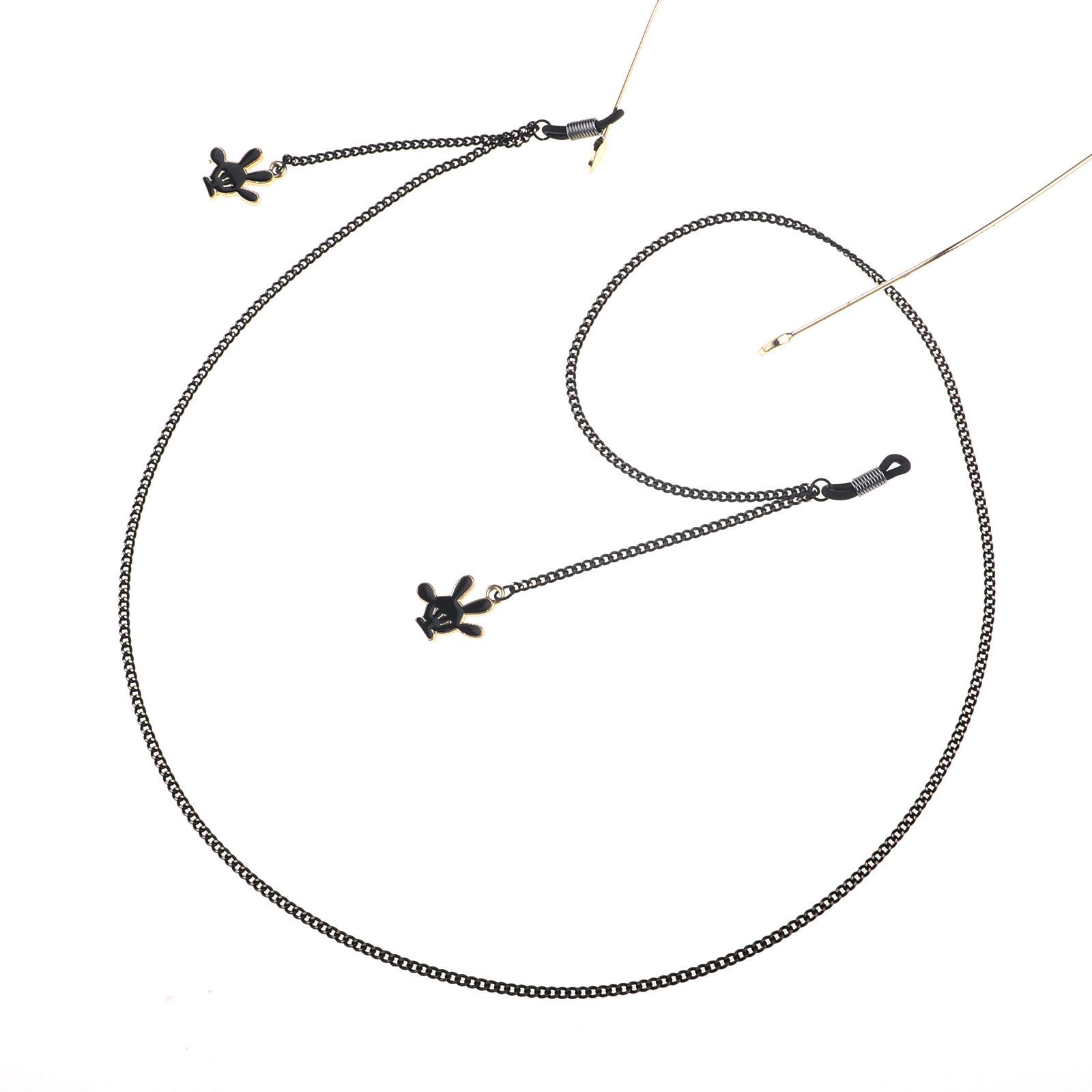 Металлическая нескользящая цепочка черного цвета, с подвеской ладонь из мультфильма, для очков и масок GL784