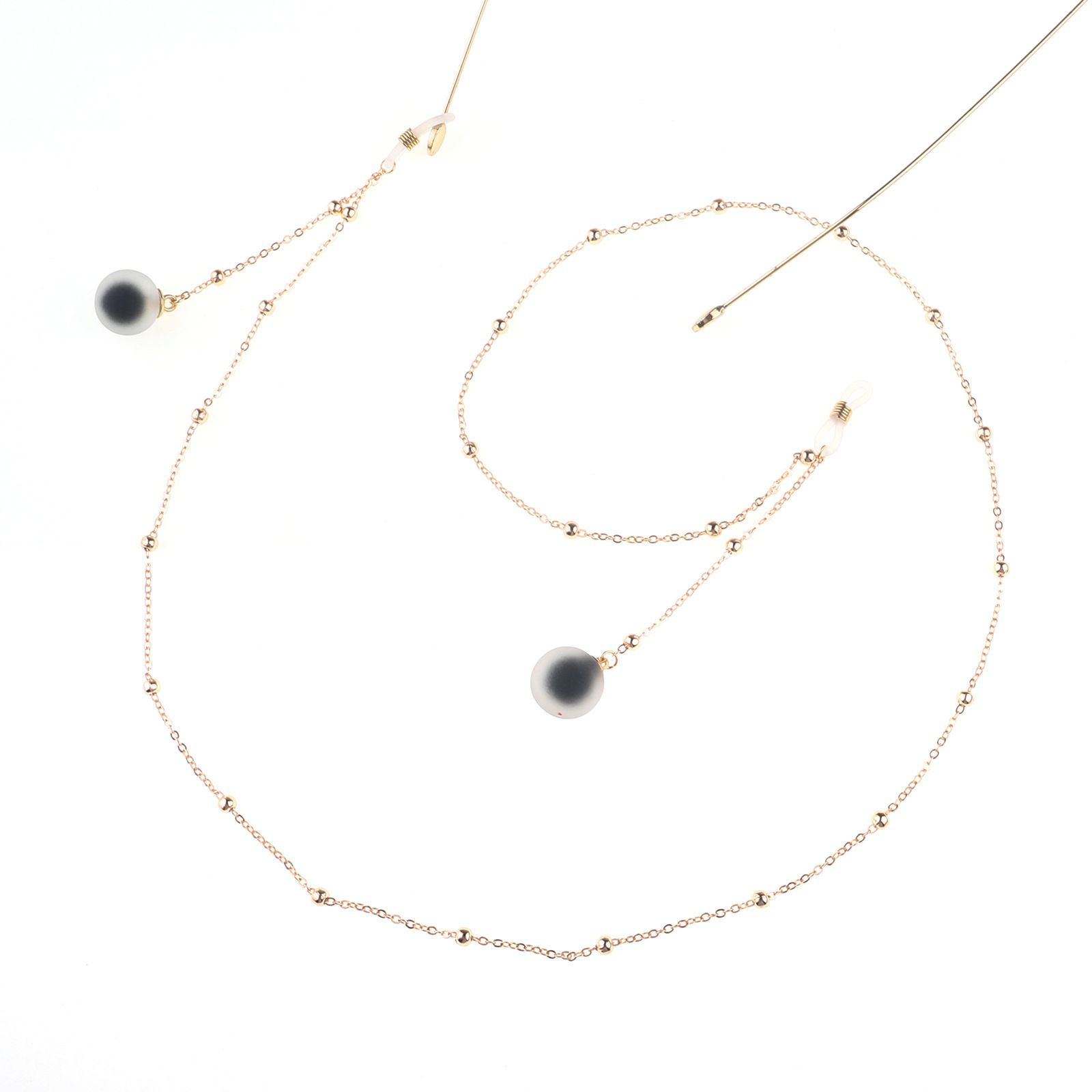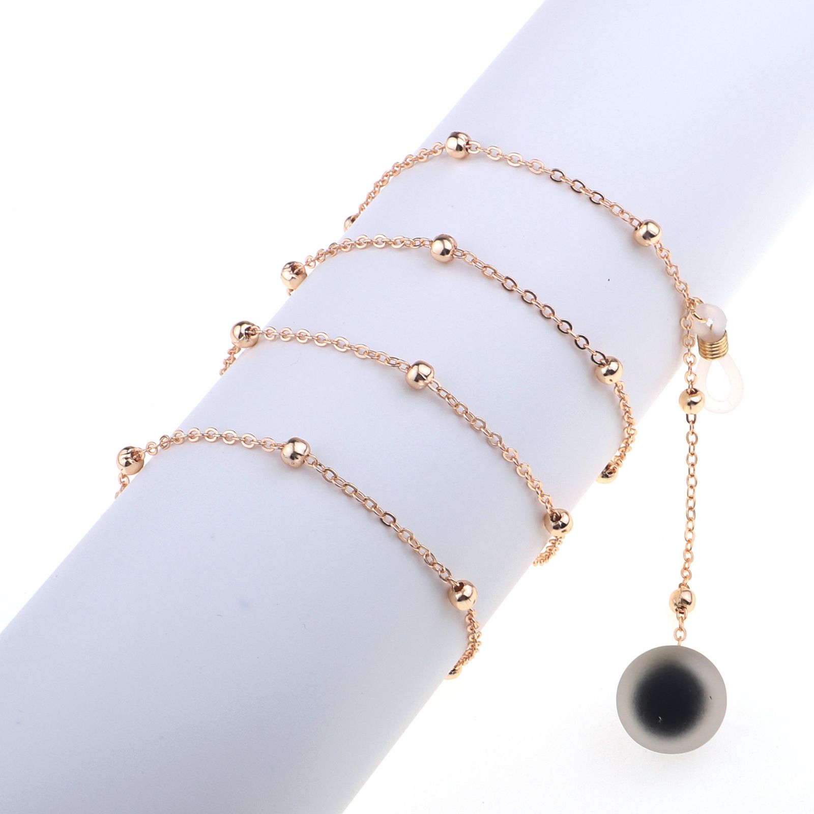 Металлическая нескользящая цепочка золотого цвета, с черным шариком и бусинами, для очков и масок GL787