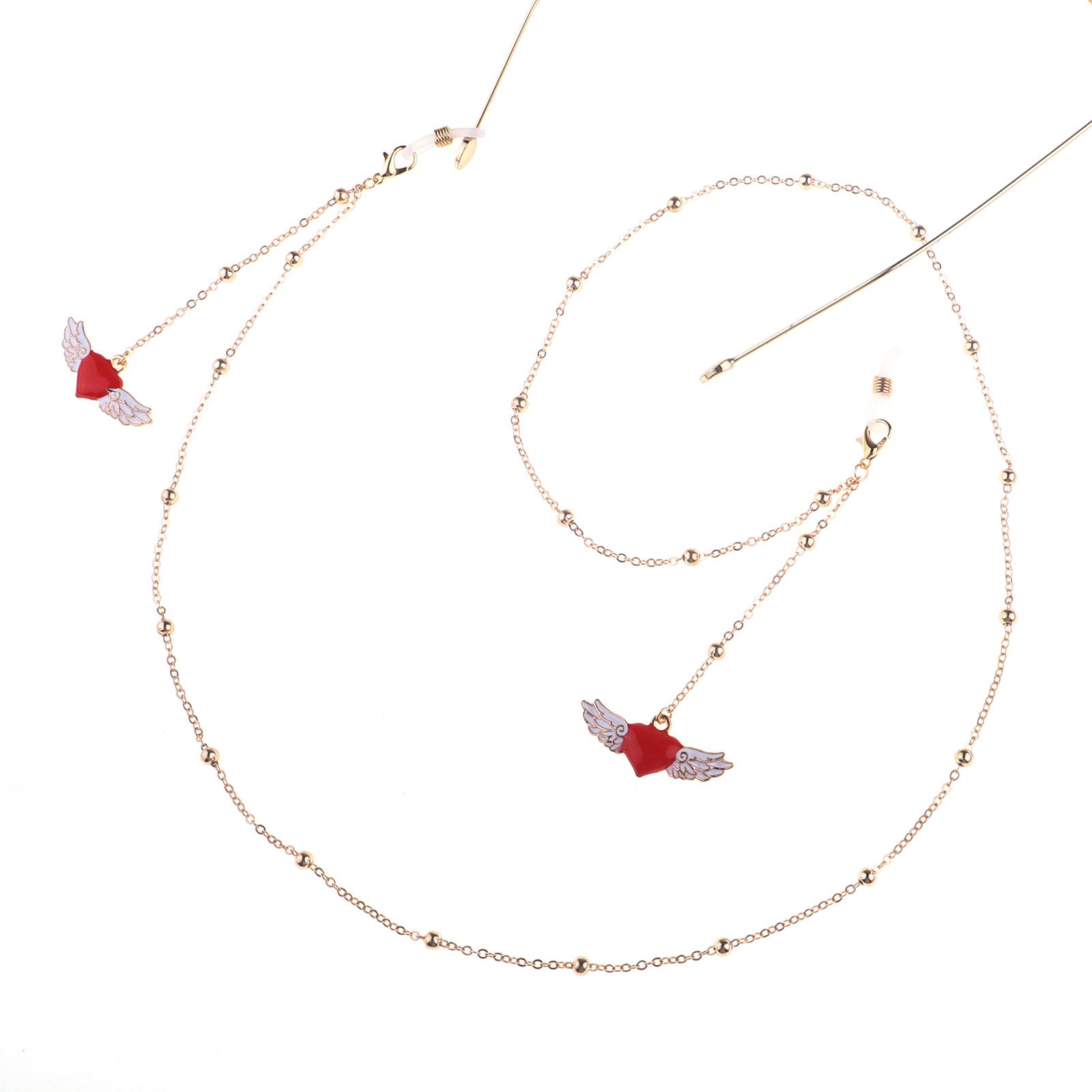 Металлическая нескользящая цепочка золотого цвета, с сердцем с крыльями и бусинами, для очков и масок GL792