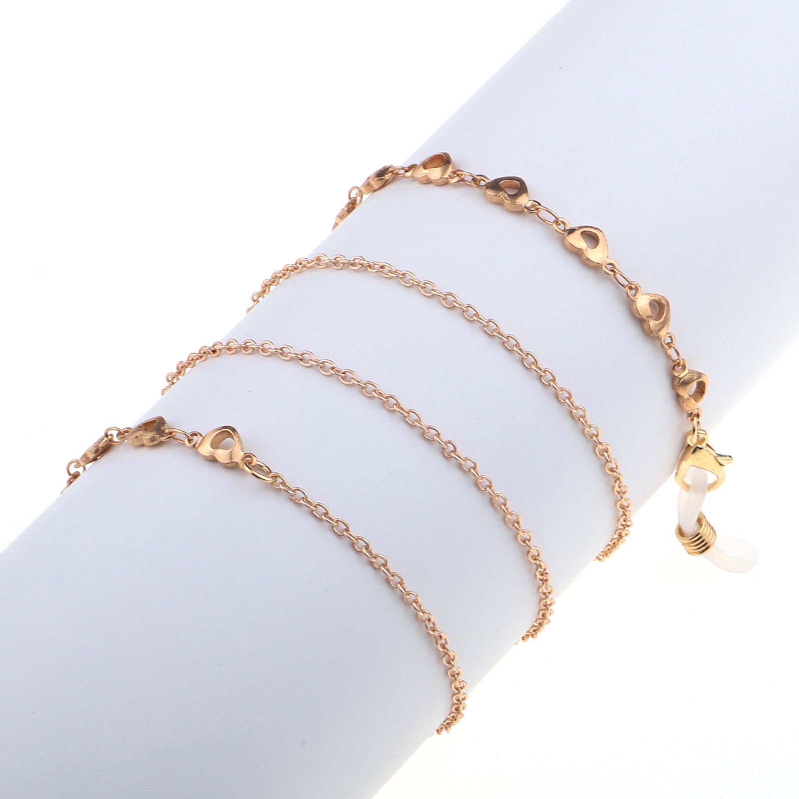 Металлическая нескользящая цепочка золотого цвета, с полым сердцем, для очков и масок GL794