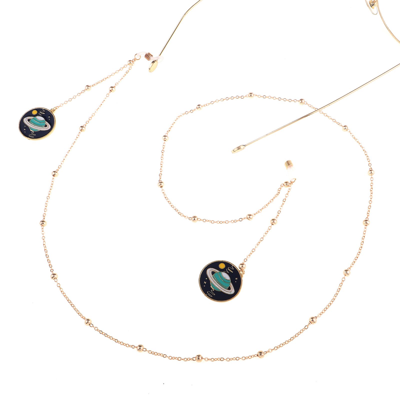Металлическая нескользящая цепочка золотого цвета, с подвеской планета и бусинами, для очков и масок GL805