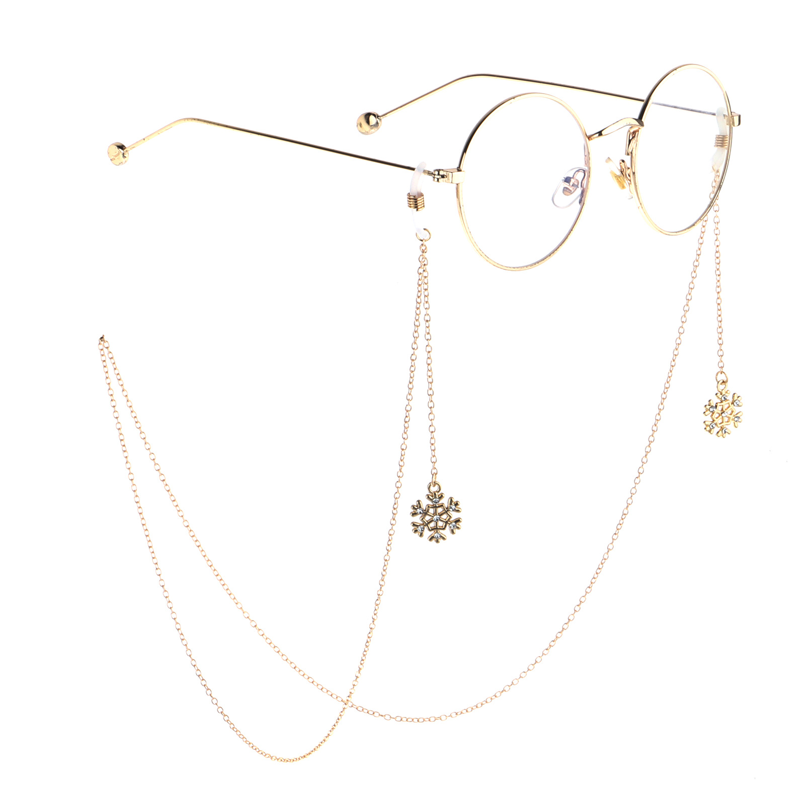 Металлическая нескользящая цепочка золотого цвета, с подвеской в виде снежинки со стразами, для очков и масок GL806
