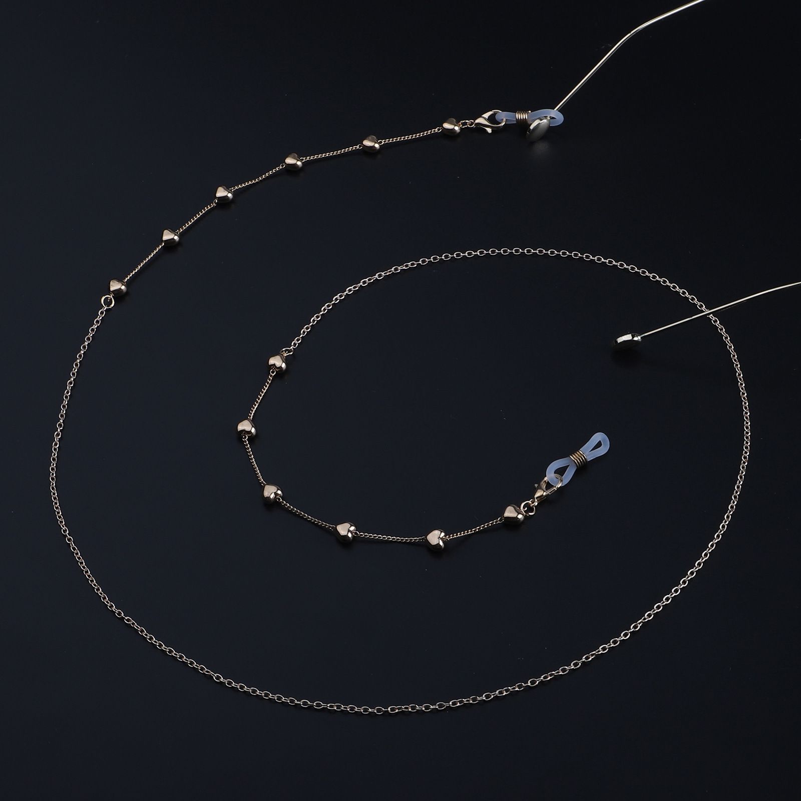 Металлическая нескользящая цепочка золотого цвета, с персмковым сердцем, для очков и масок GL876