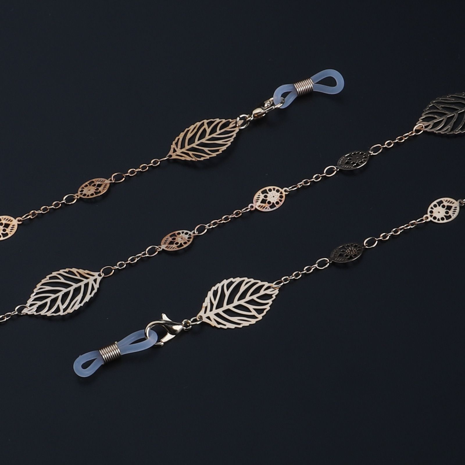 Металлическая нескользящая цепочка, с золотыми полыми листьями, для очков и масок GL884