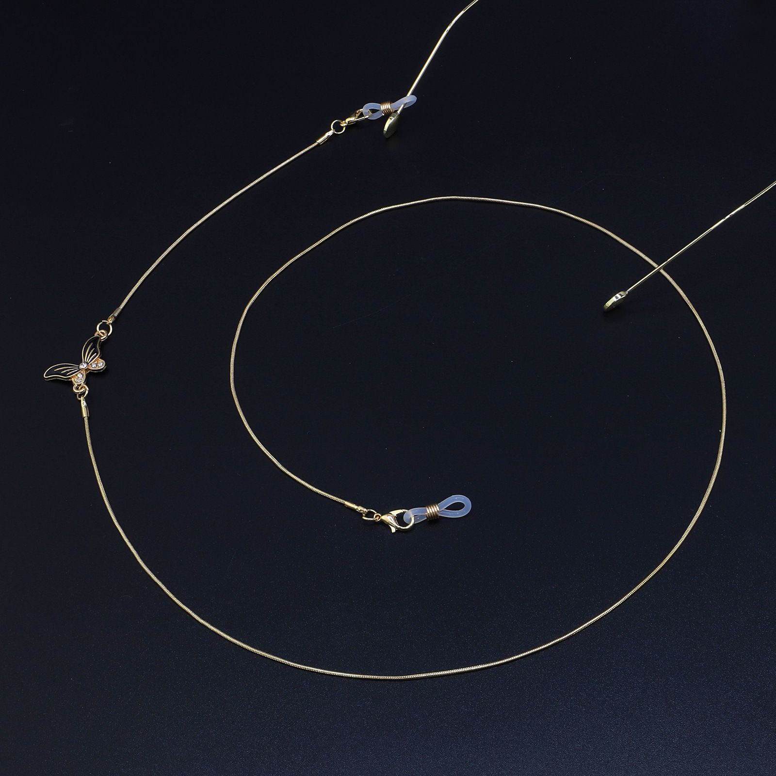 Металлическая нескользящая цепочка золотого цвета, с бабочкой и стразами, для очков и масок GL913
