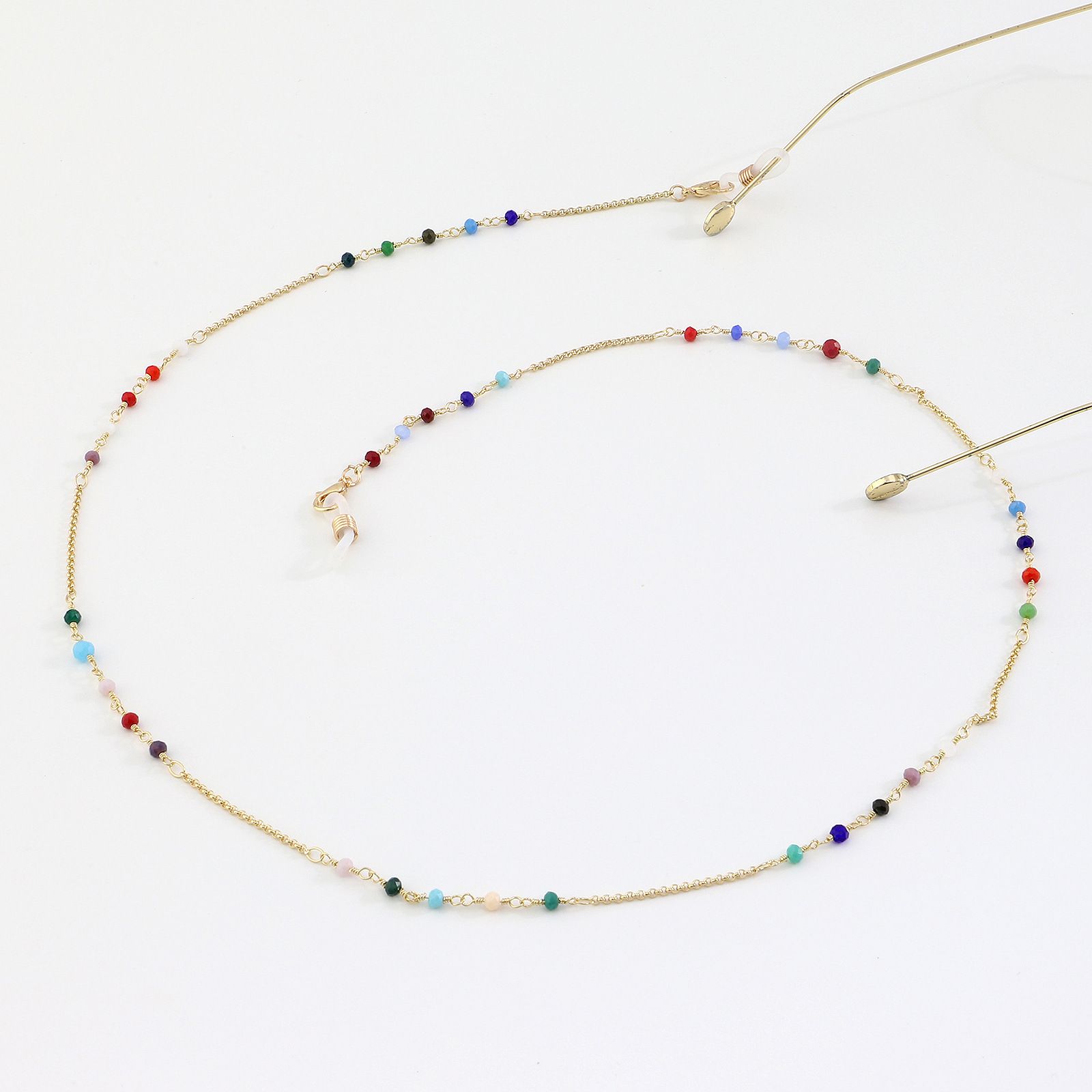 Металлическая нескользящая цепочка золотая, с цветными кристаллами, для очков и масок GL986