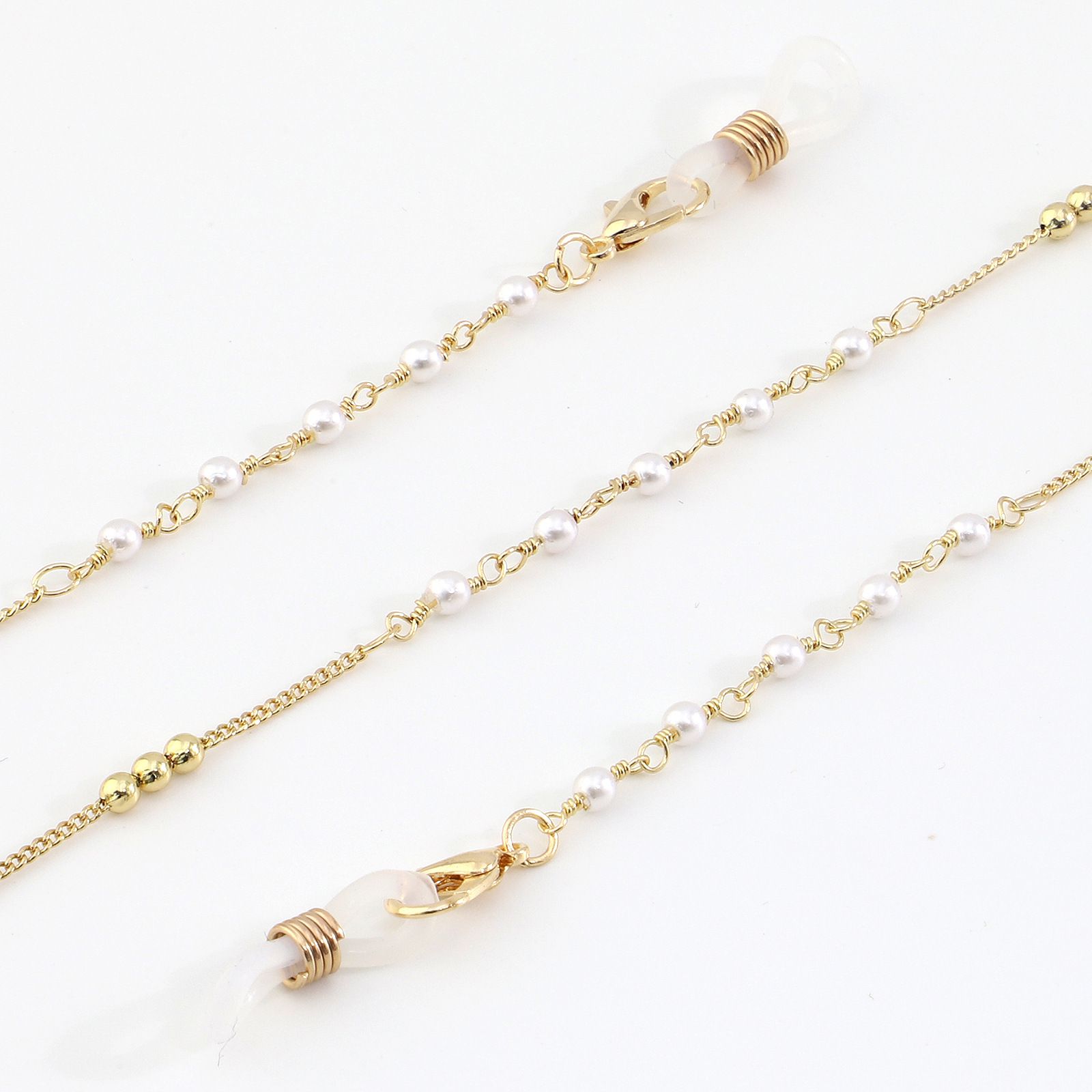 Металлическая нескользящая цепочка золотая, с медными и жемчужными бусинами, для очков и масок GL993