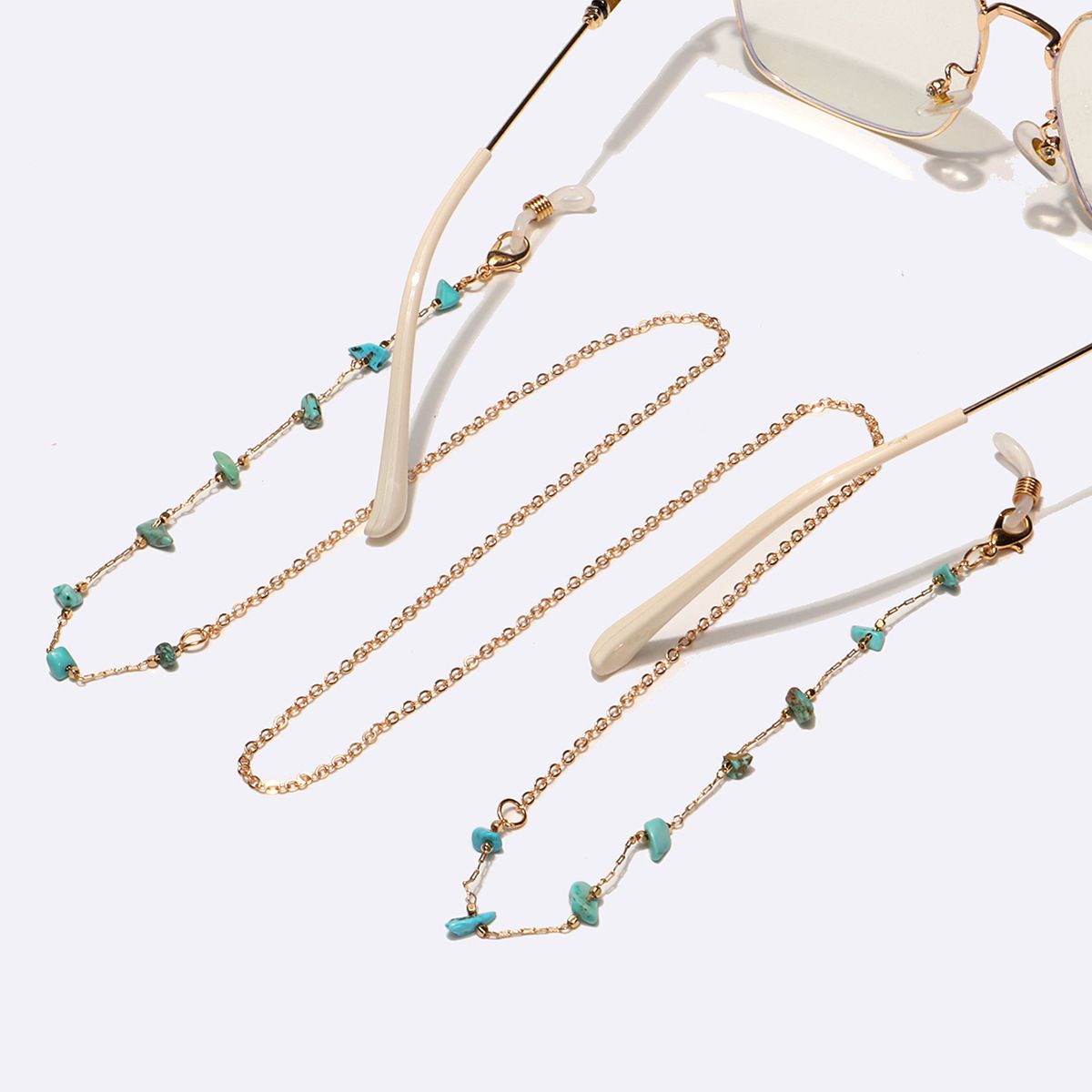 Металлическая нескользящая цепочка золотого цвета, с натуральной бирюзой, для очков и масок GL995