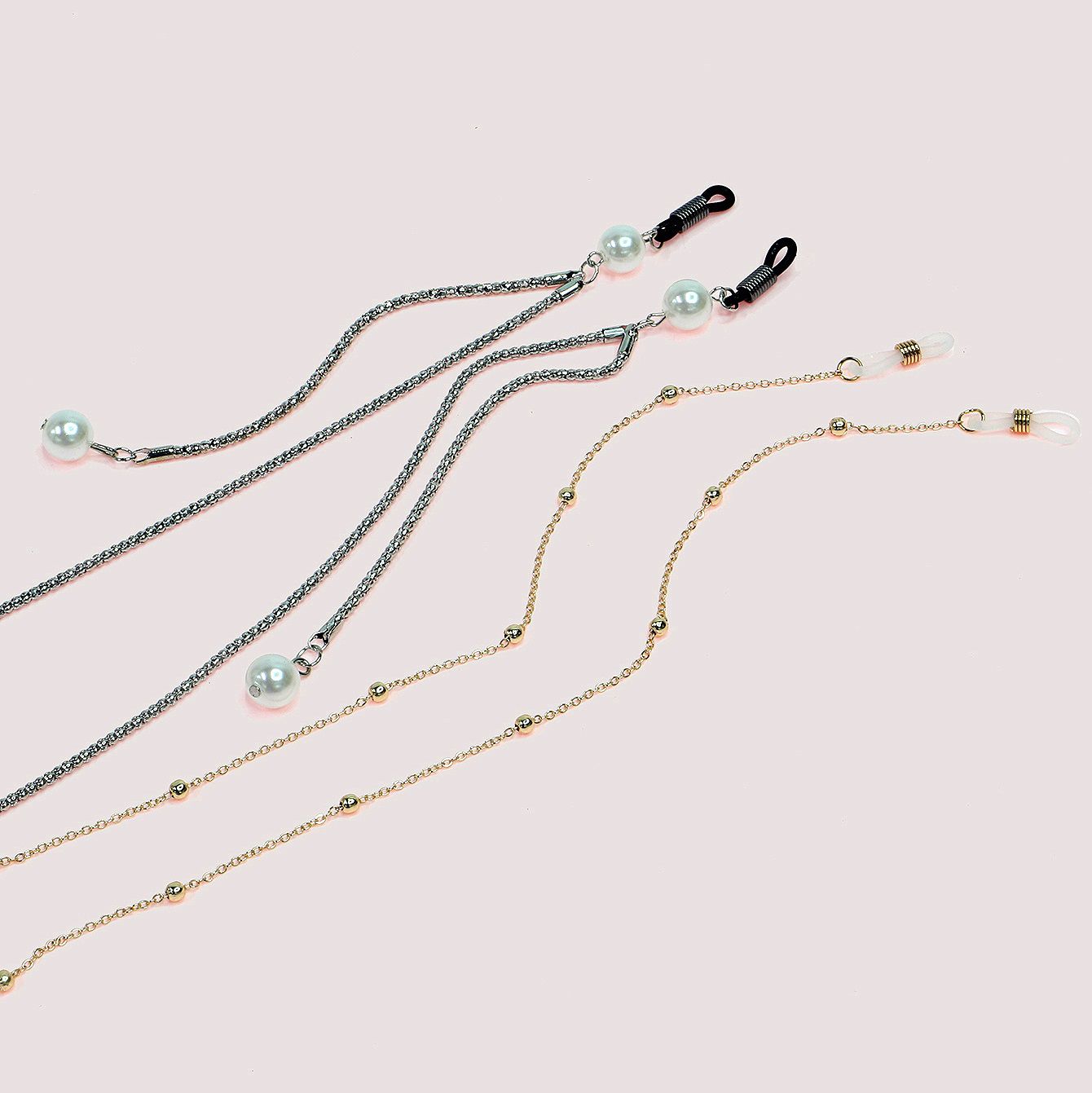 Металлическая нескользящая цепочка комплект из 2-х предметов, с жемчугом и бусинами, для очков и масок GM008