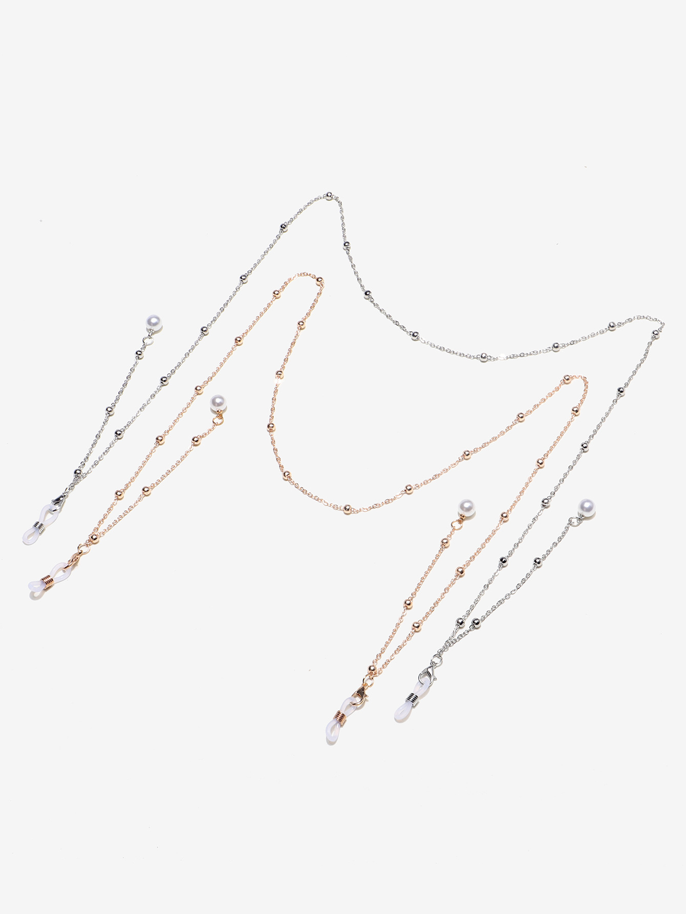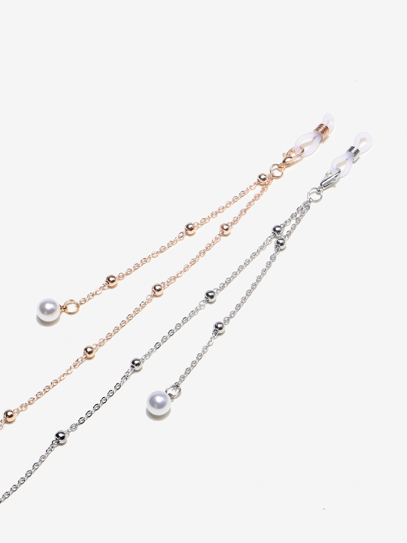 Цепочка для очков с жемчужными бусинами, комплект из двух штук, золотая и серебряная GM028