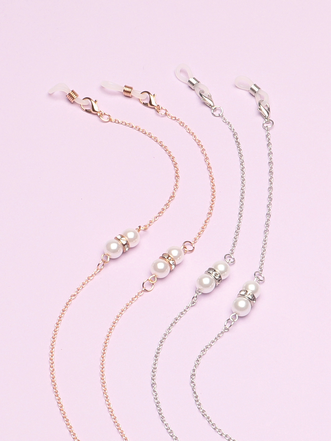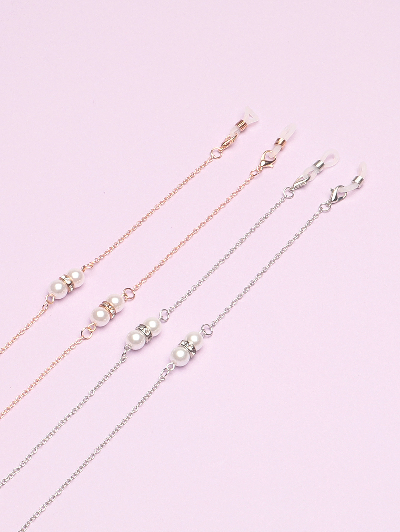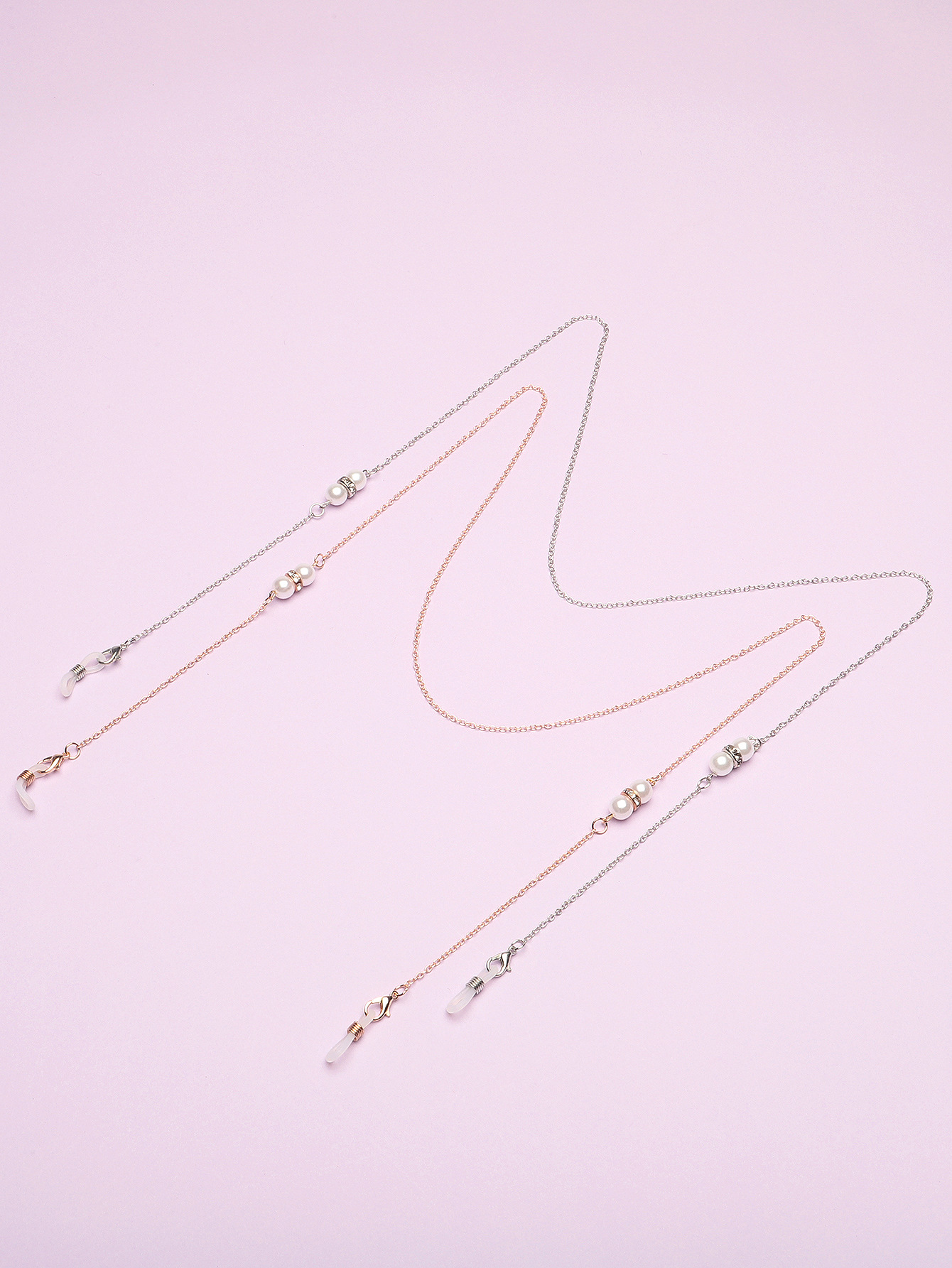 Золотые и серебряные цепочки для очков с жемчугом и стразами, набор из двух штук GM047