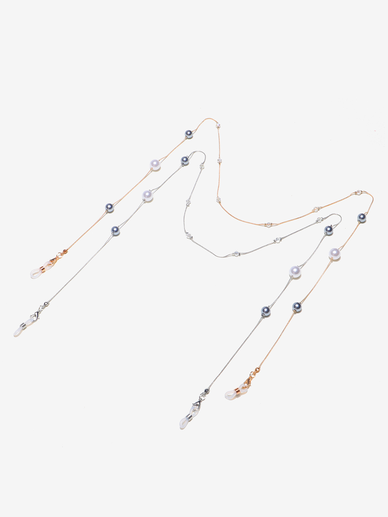 Металлическая нескользящая цепочка золотая и серебряная, комплект из 2 цепочек с жемчугом, для очков и масок GM089
