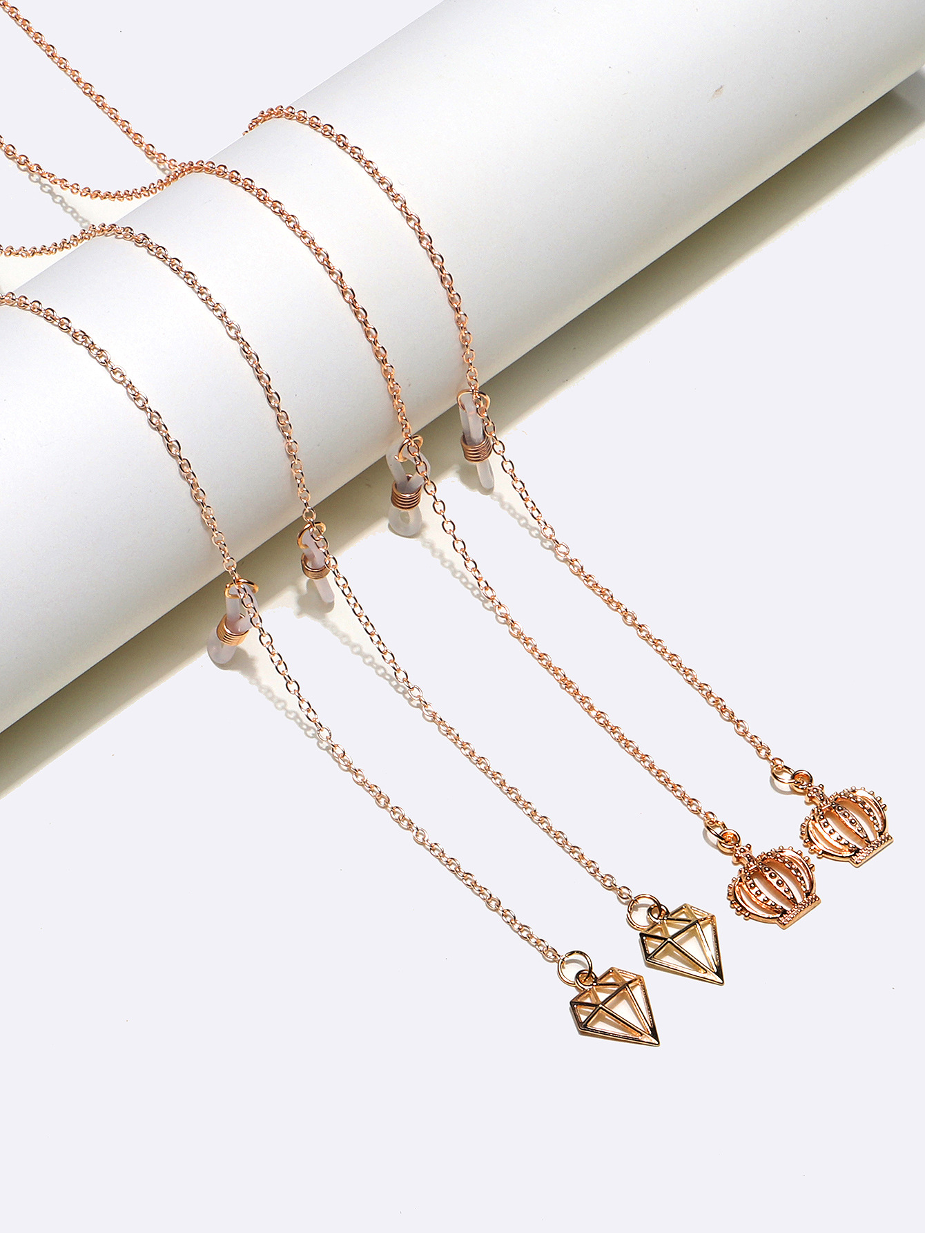 Набор из двух цепочек для очков с полыми формами бриллианта и коронами GM101