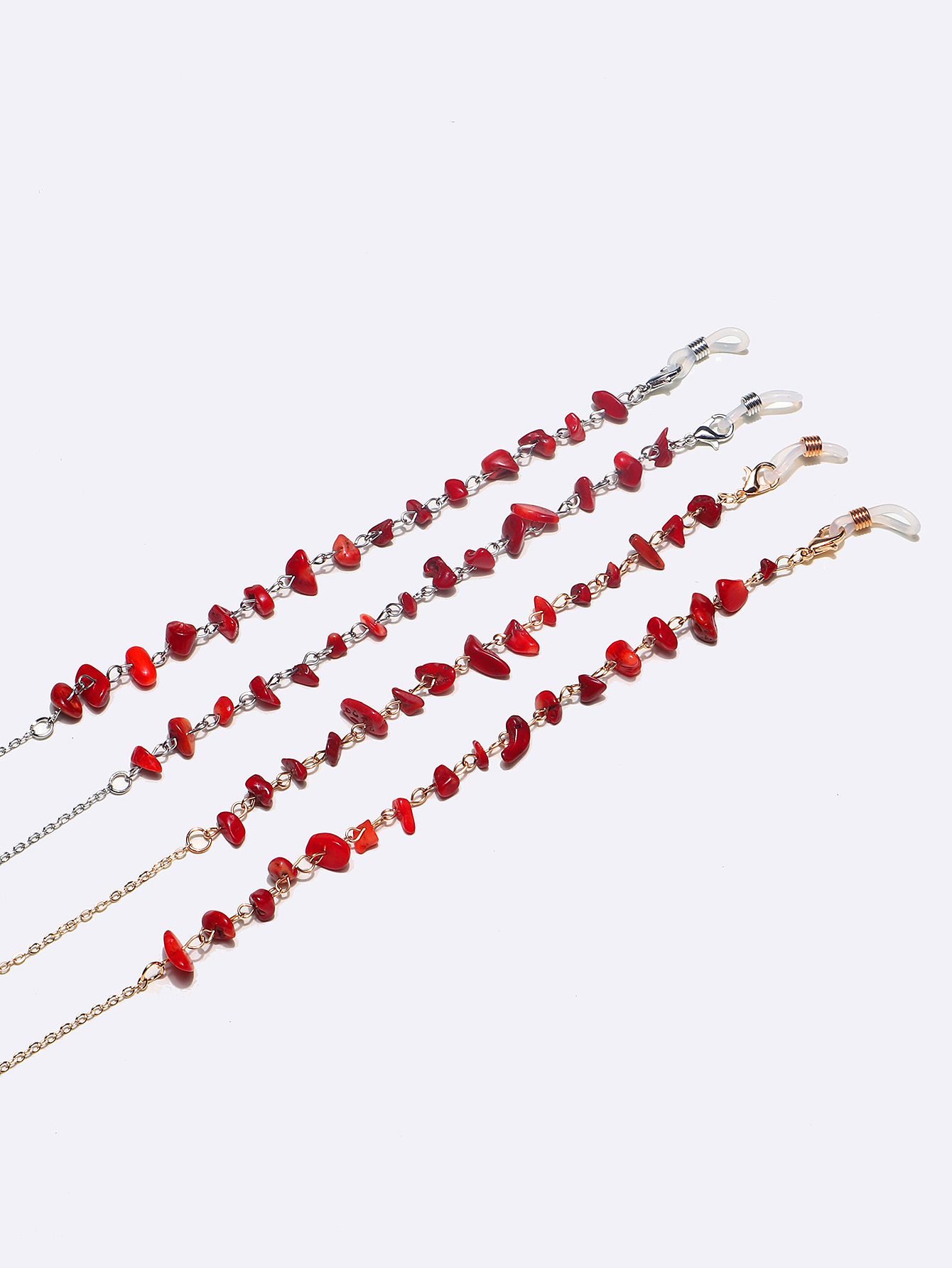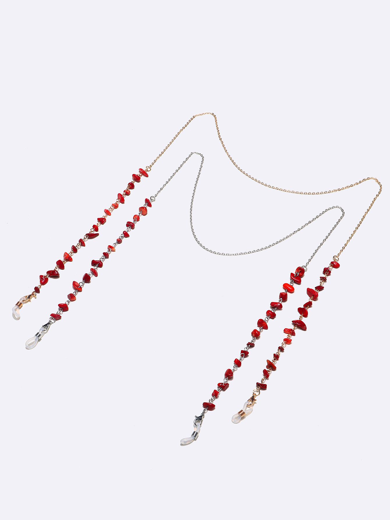 Металлическая нескользящая цепочка,комплект из золотой и серебрянной с натуральным красным камнем, для очков и масок GM126