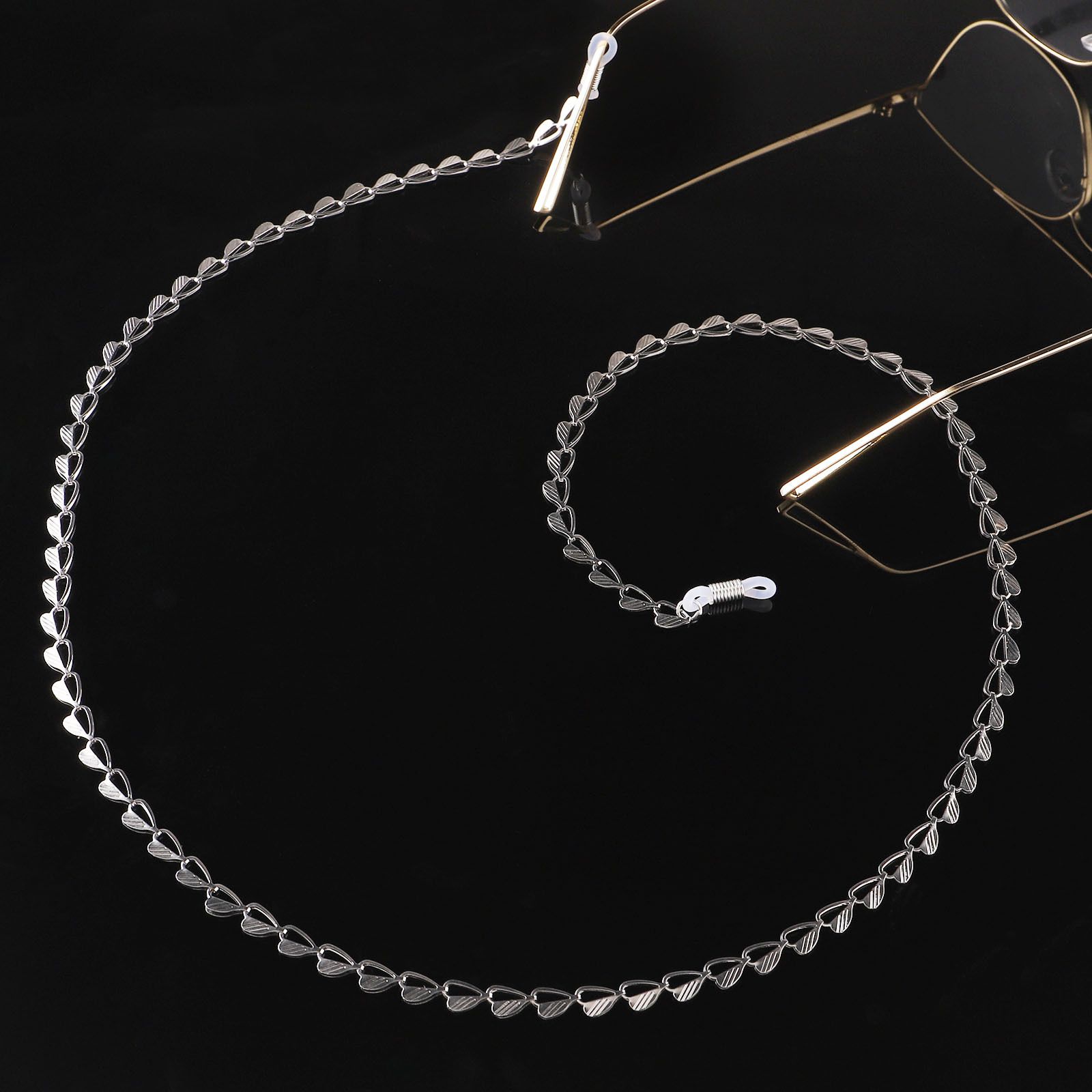 Металлическая нескользящая цепочка стального цвета, с сердцем, для очков и масок GS011