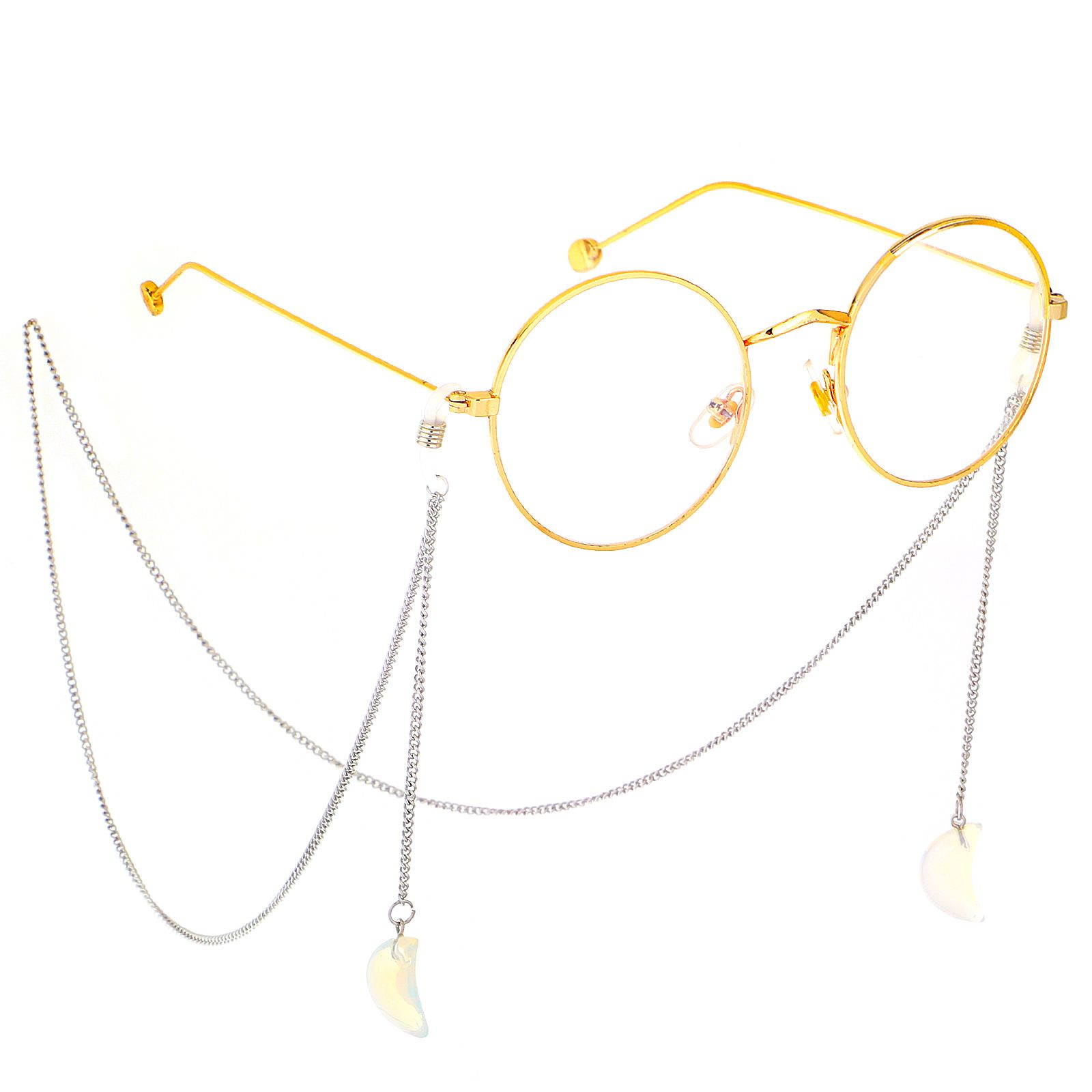 Металлическая нескользящая цепочка серебряного цвета, с подвеской в виде опаловой луны, для очков и масок GS023