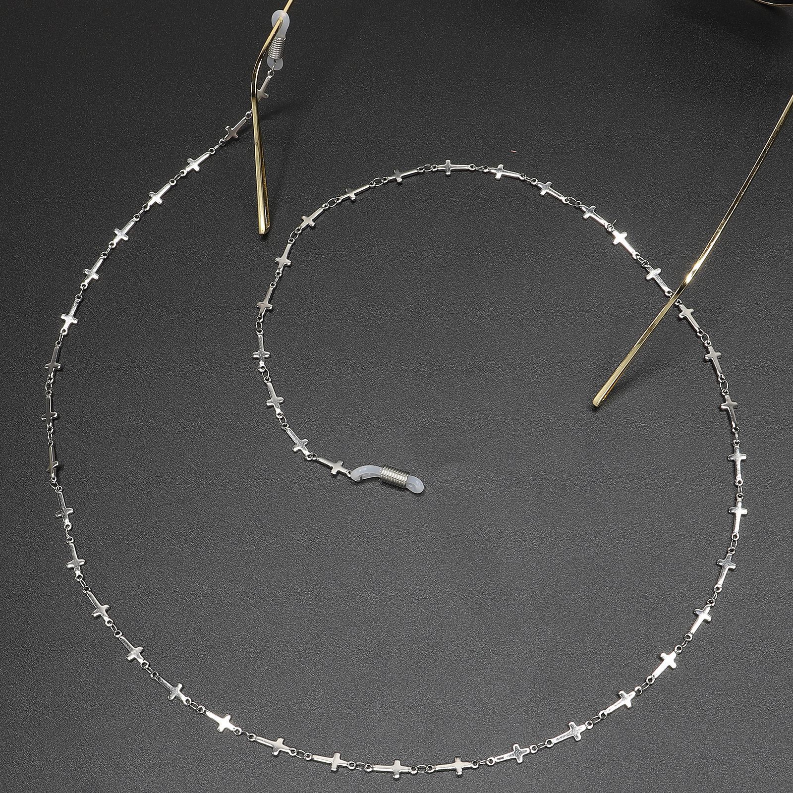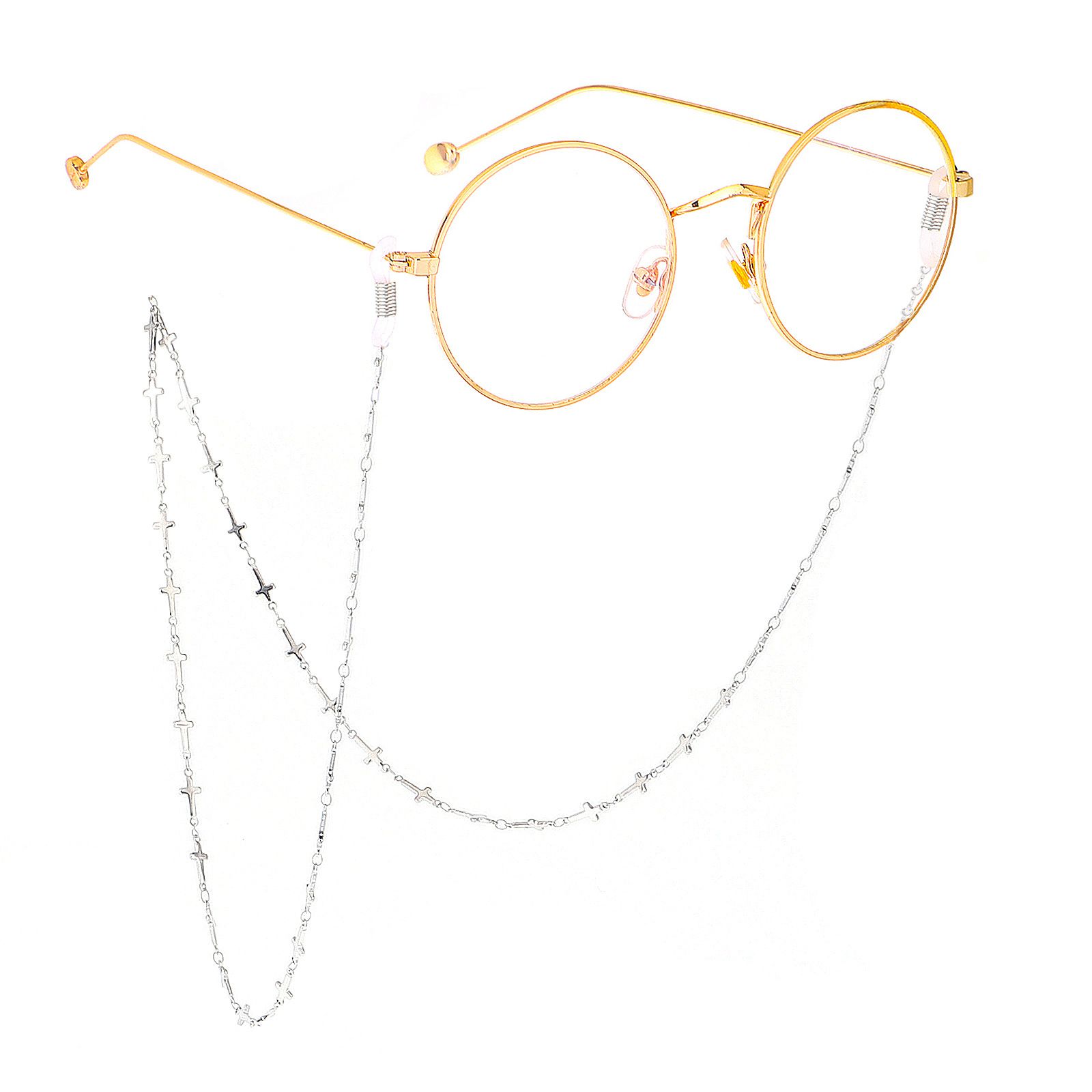 Металлическая нескользящая цепочка с серебрянным покрытием, с крестом, для очков и масок GS029