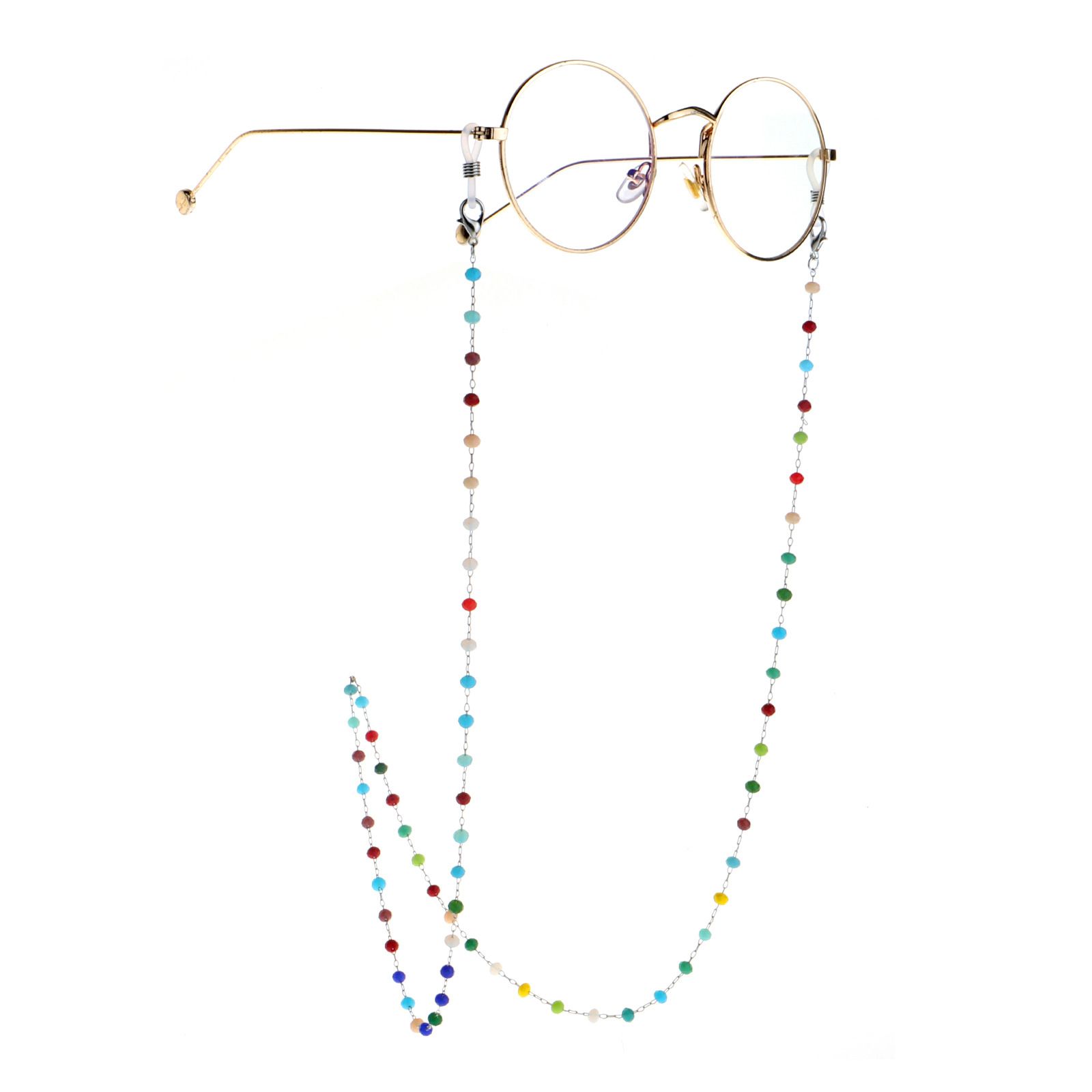 Металлическая нескользящая цепочка серебряная, с цветными круглыми кристаллами, для очков и масок GS038