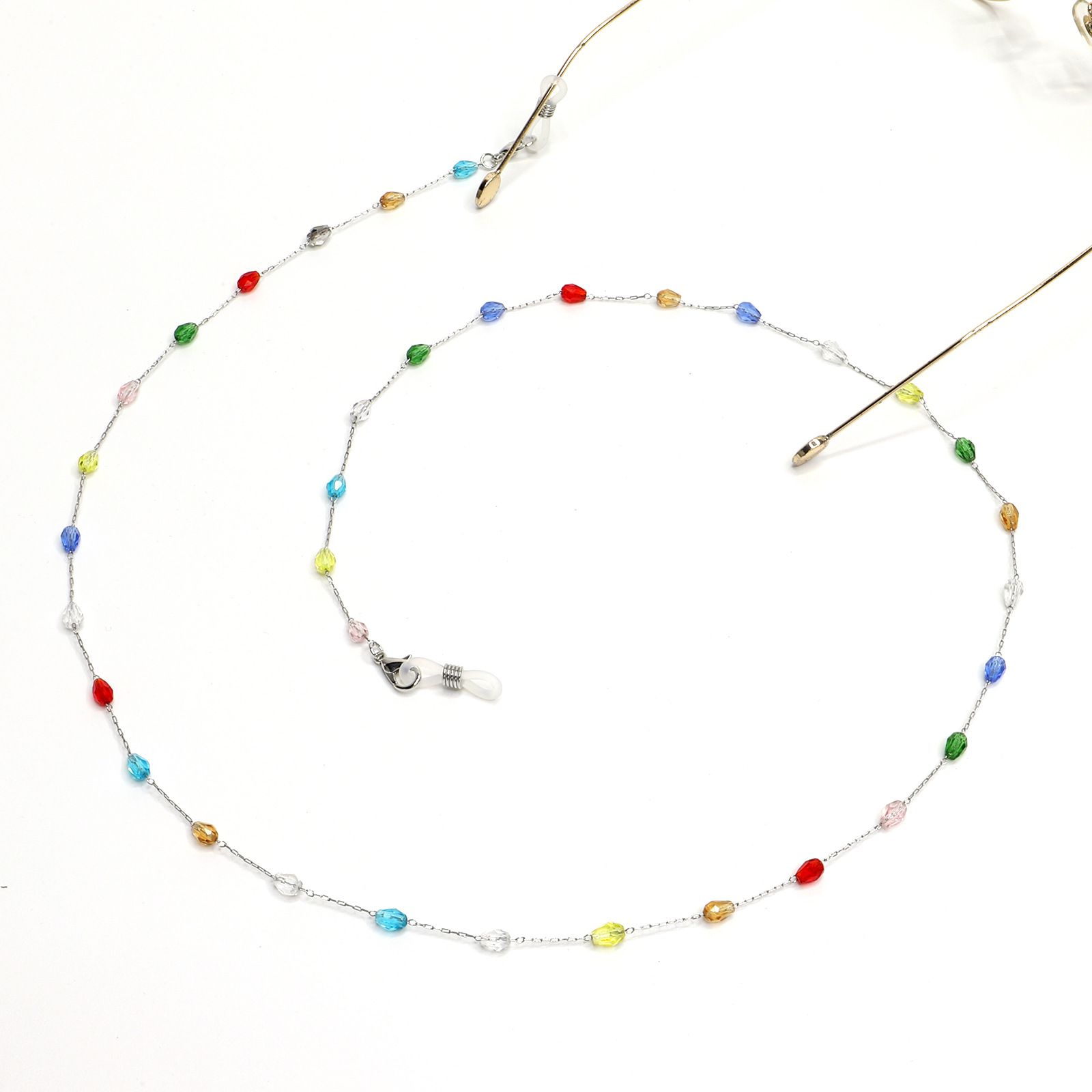 Металлическая нескользящая цепочка серебряного цвета, с цветными овальными кристаллами, для очков и масок GS040
