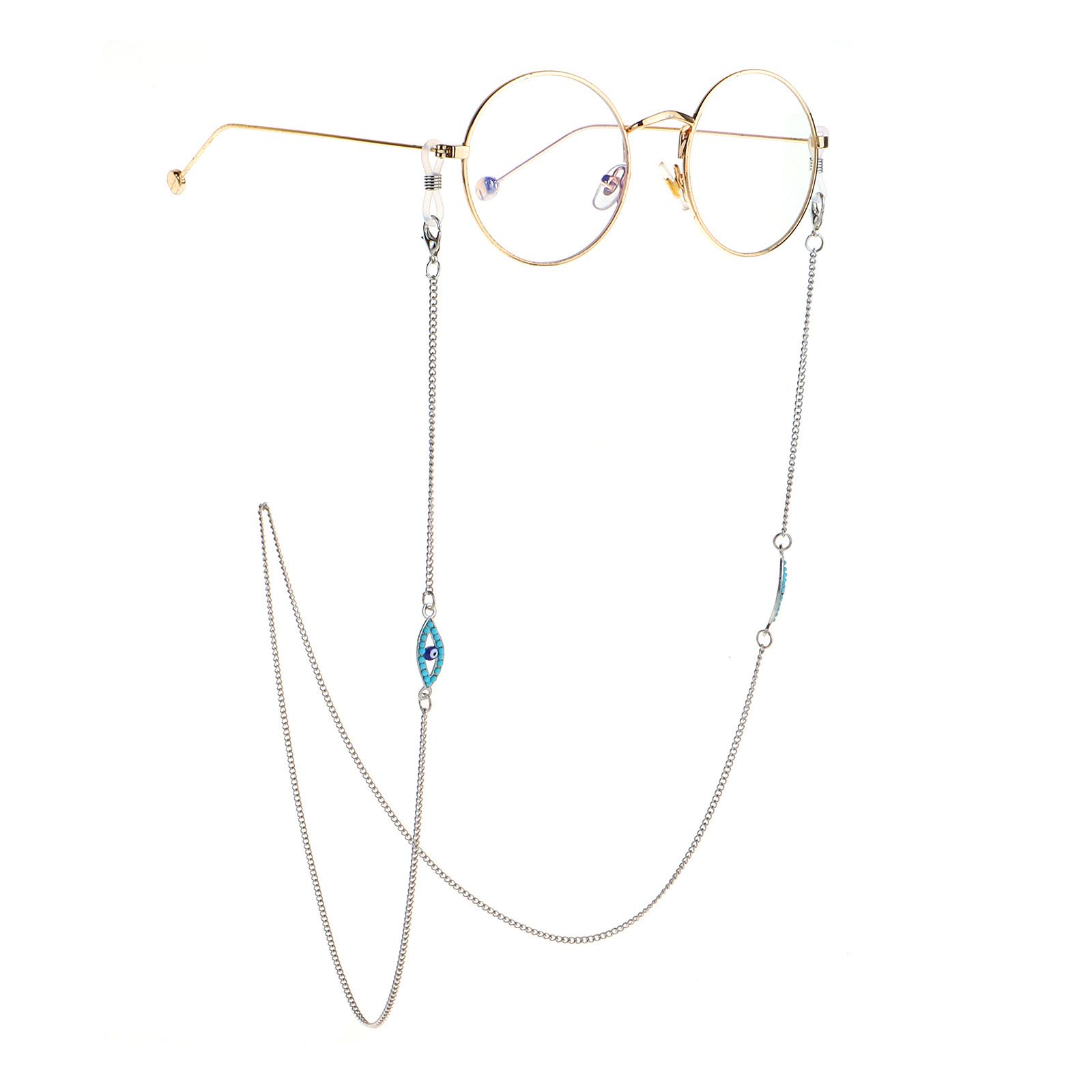 Металлическая нескользящая цепочка стального цвета, с бирюзовыми глазками, для очков и масок GS042