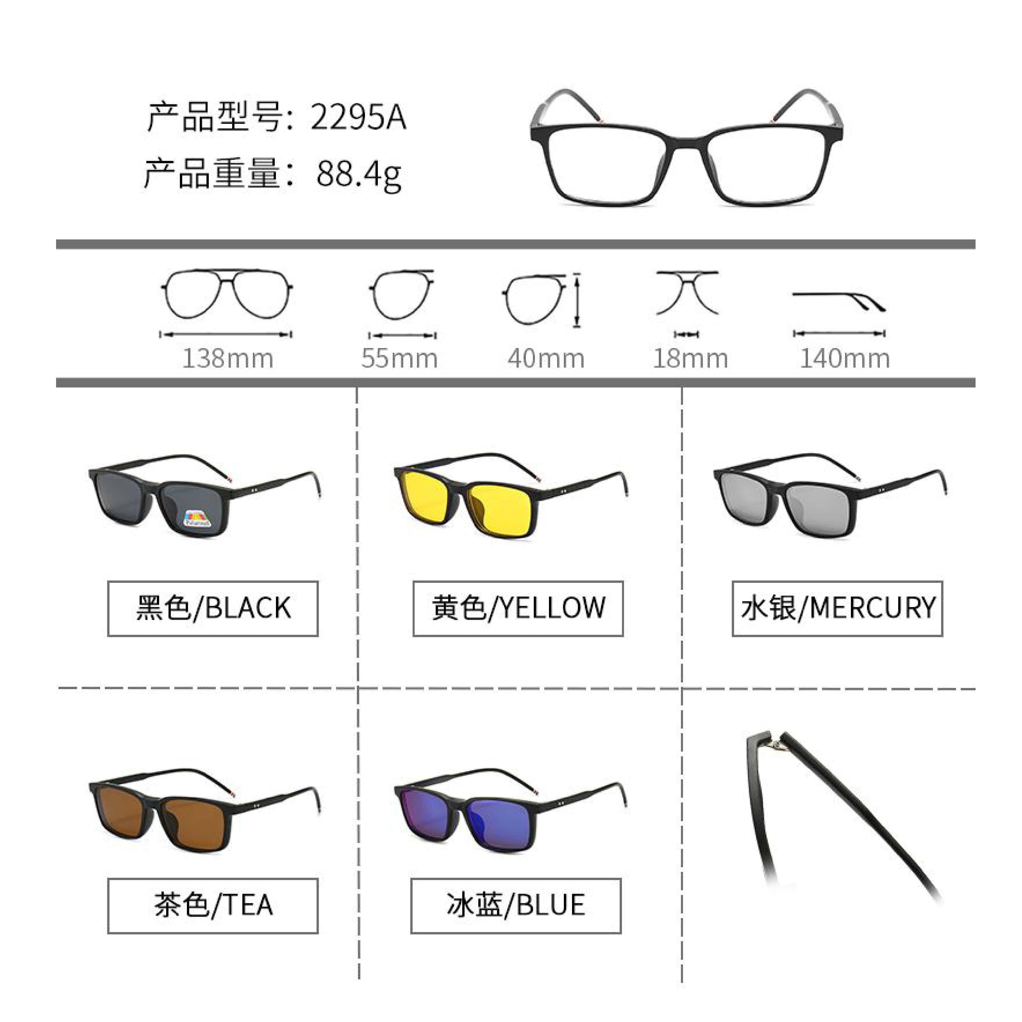 Frame with a set of polarizing protective clip-ons. These frames additionally come with a set of several magnetic attachments, which are polarized sun lenses. Eyeglass pads (or eyeglass attachments or eyeglass clip-ons) are intended for those who wear eyeglasses. In one swipe, your glasses will transform from your regular glasses to sunglasses or driving goggles. The fastening mechanism allows the pads to be folded up without removing them from the glasses. All of our covers have a polarized lens coating. Polarized coating on UV400 protection glasses absorbs up to 99% of harmful UVA and UVB rays. They are perfect not only for protecting your eyes from the sun, but also for fishing, driving, active sports.