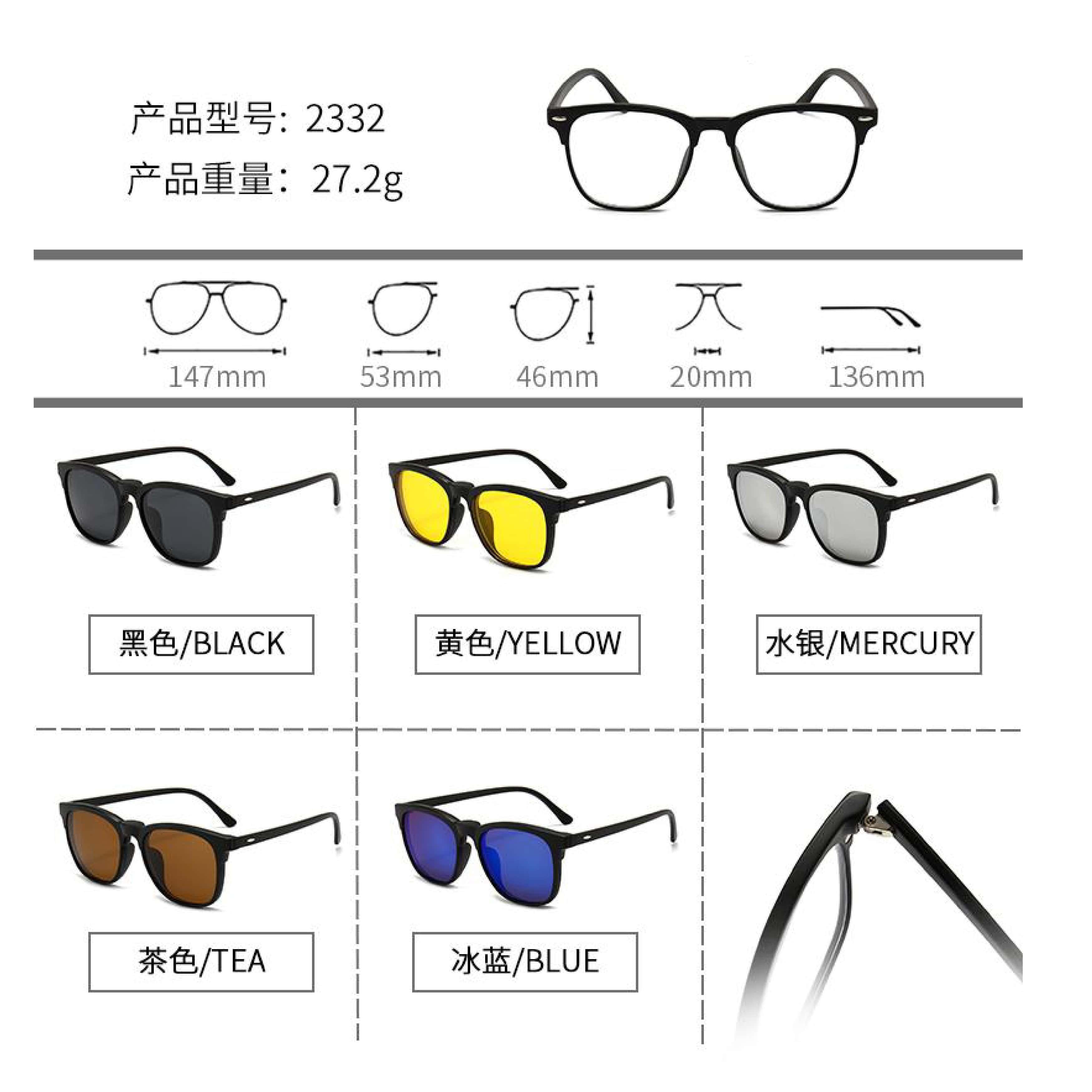 Frame with a set of polarizing protective clip-ons. These frames additionally come with a set of several magnetic attachments, which are polarized sun lenses. Eyeglass pads (or eyeglass attachments or eyeglass clip-ons) are intended for those who wear eyeglasses. In one swipe, your glasses will transform from your regular glasses to sunglasses or driving goggles. The fastening mechanism allows the pads to be folded up without removing them from the glasses. All of our covers have a polarized lens coating. Polarized coating on UV400 protection glasses absorbs up to 99% of harmful UVA and UVB rays. They are perfect not only for protecting your eyes from the sun, but also for fishing, driving, active sports.