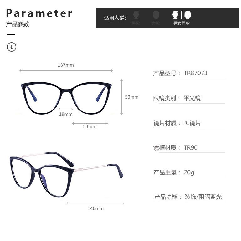 - Frame material: TR90 plastic