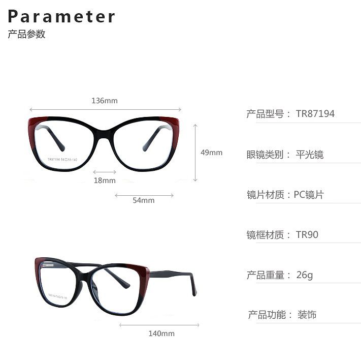 - Size: lens width - 54 mm, bridge - 18 mm, temple length - 140 mm
