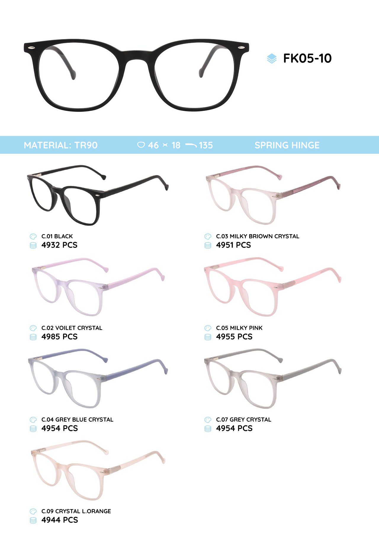 TR90 plastic eyeglasses frame FK05-10