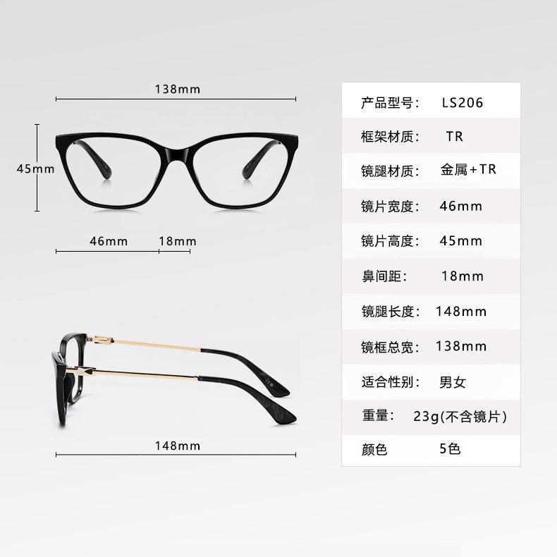 - Frame material: TR90 plastic+metal