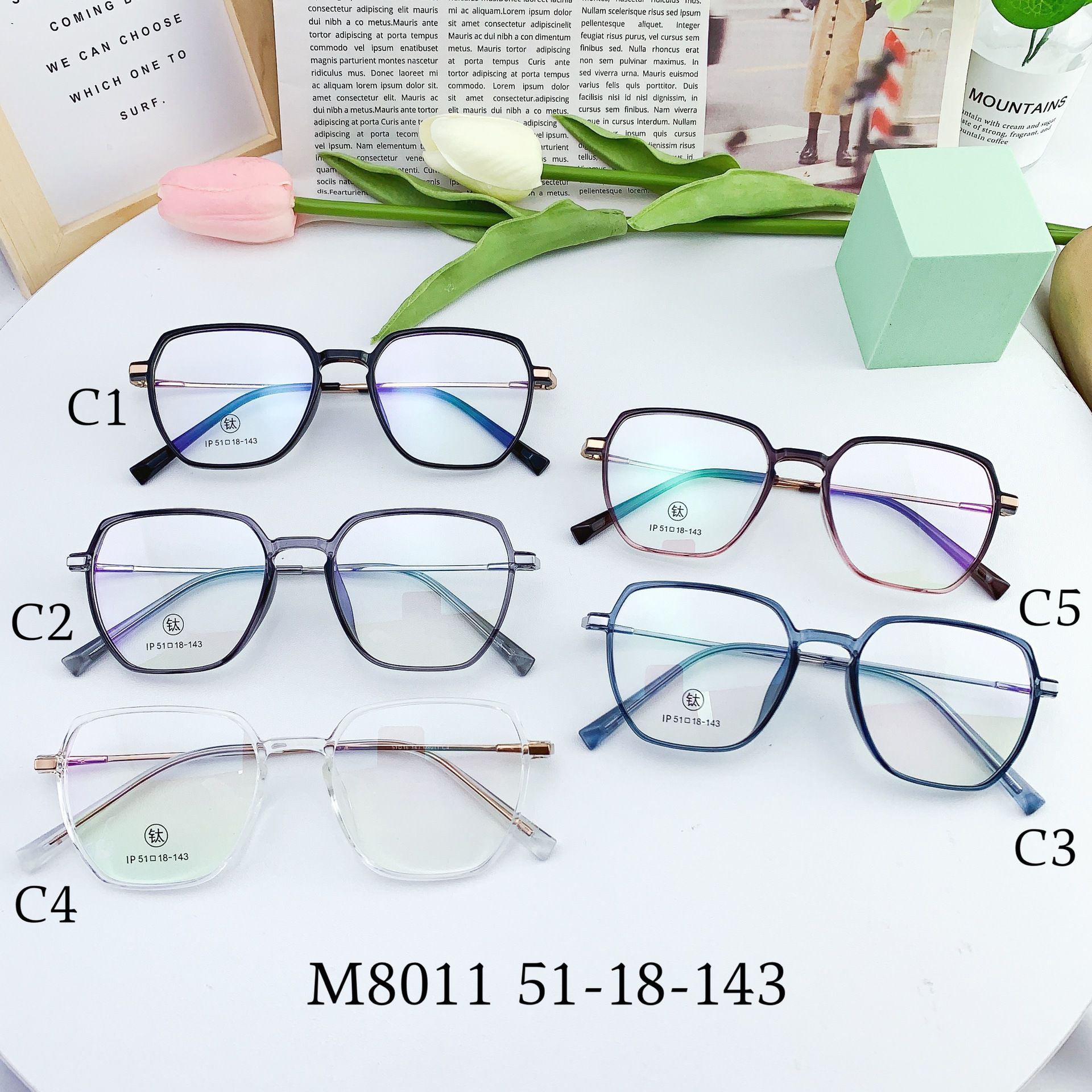 - Frame material: titanium alloy + TR90