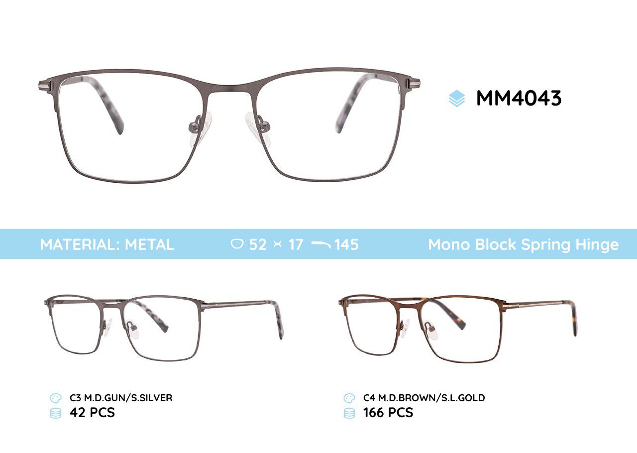 Metal men's frame for glasses with spring hinges MM4043