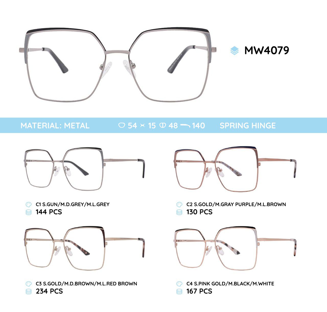 Metal frames for glasses. The material is stainless steel. The frames keep their shape well, at the same time they are flexible. High quality. Frames have good tactile properties and resistant to damage, they are lightweight and hypoallergenic. Many of models are decorated with rhinestones, have elegant temples and flex hinges. Fashionable design. This frames collection of high quality, passes piece control. In our store goods of this category have a low price for wholesale. European Conformity.