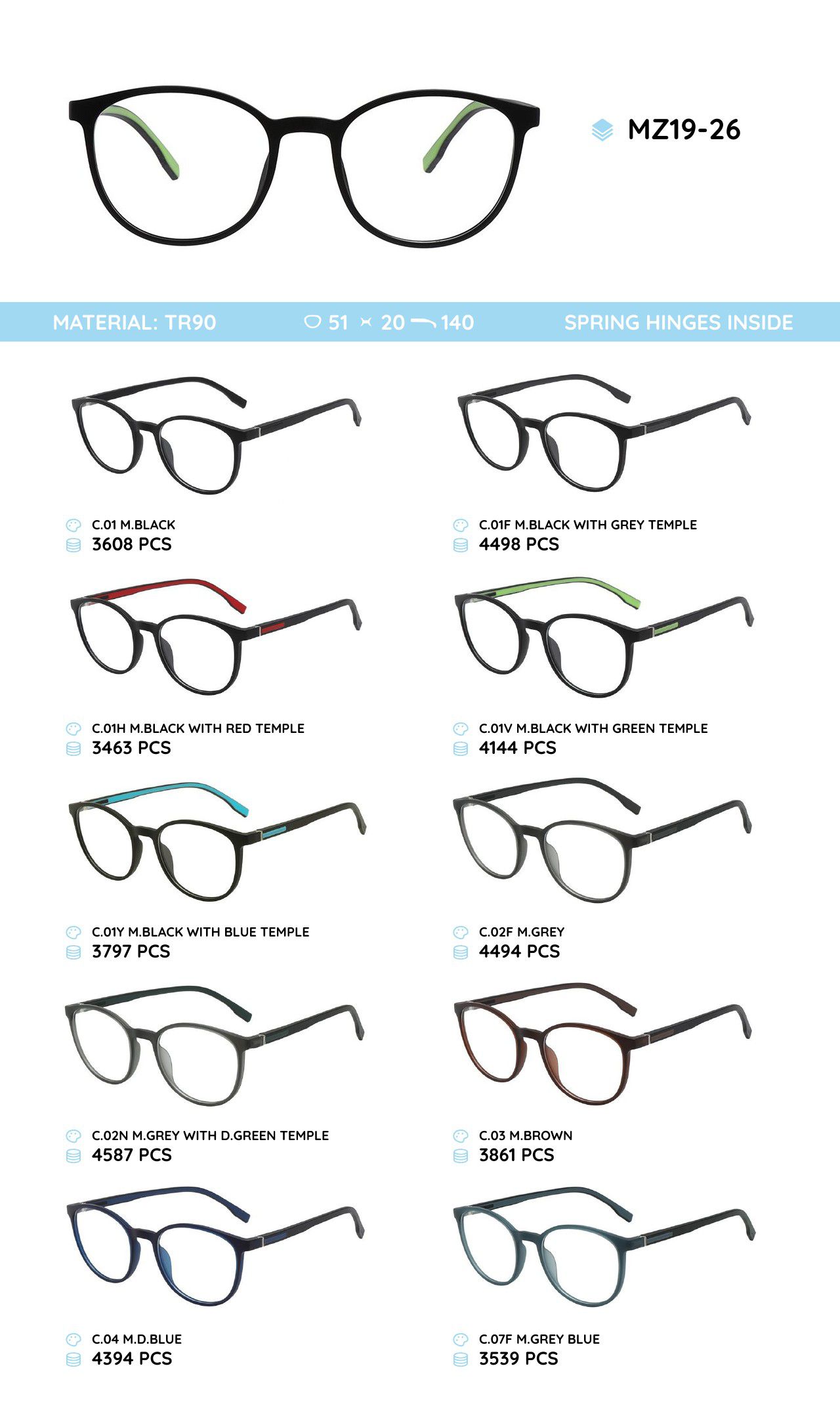 TR-90 plastic frames for glasses, with spring hinges MZ19-26