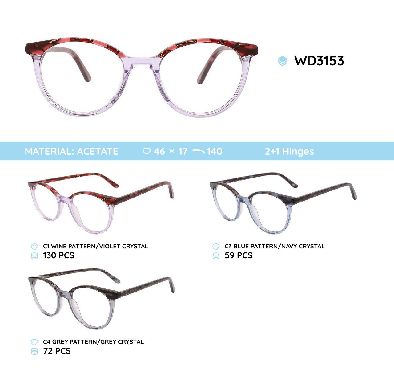 Glasses frames are plastic, acetate, milled. The frames hold their shape well, at the same time are flexible in use when making glasses, are of high quality, have pleasant tactile properties, are resistant to damage, are lightweight, and have hypoallergenic properties. Many models are decorated with rhinestones, with elegant temples and flex hinges. Fashionable design. This collection of high quality frames is individually controlled. Our store offers a low price for goods in this category for wholesale. CE standard (European Conformity).