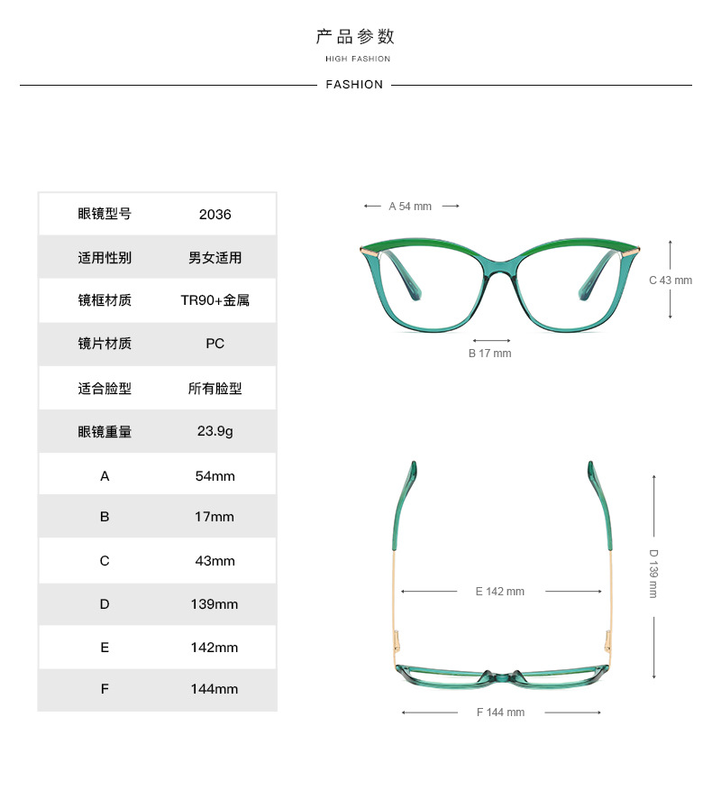 - Size: lens width - 54 mm, bridge - 17 mm, temple length - 139 mm