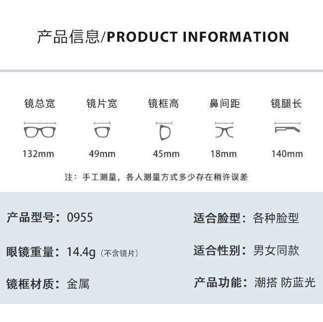 Metal Blue Block glasses with blue light protection FENQI F955