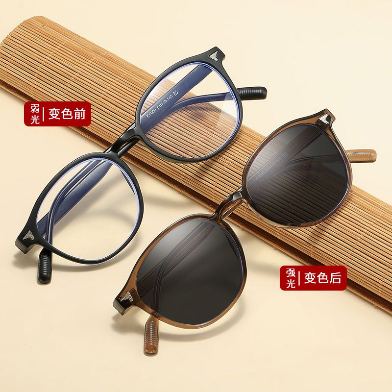 Photochromic plastic glasses with protection Blue Cut KY009变色平光