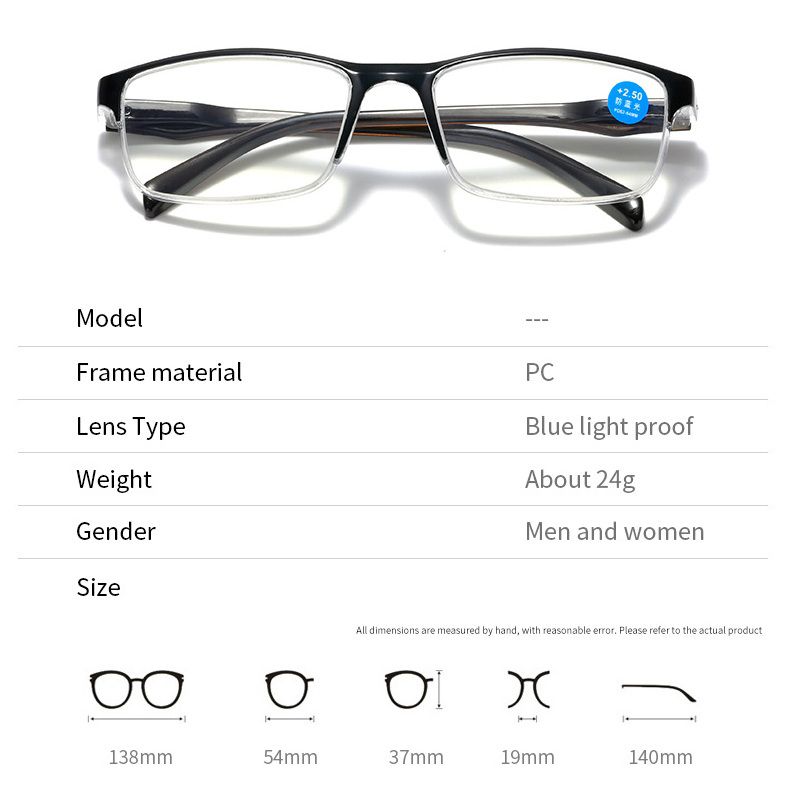 Plastic reading glasses TR1935 with Blue ray cut protection, diopters from +1.00 to +4.00, RMC=62-64