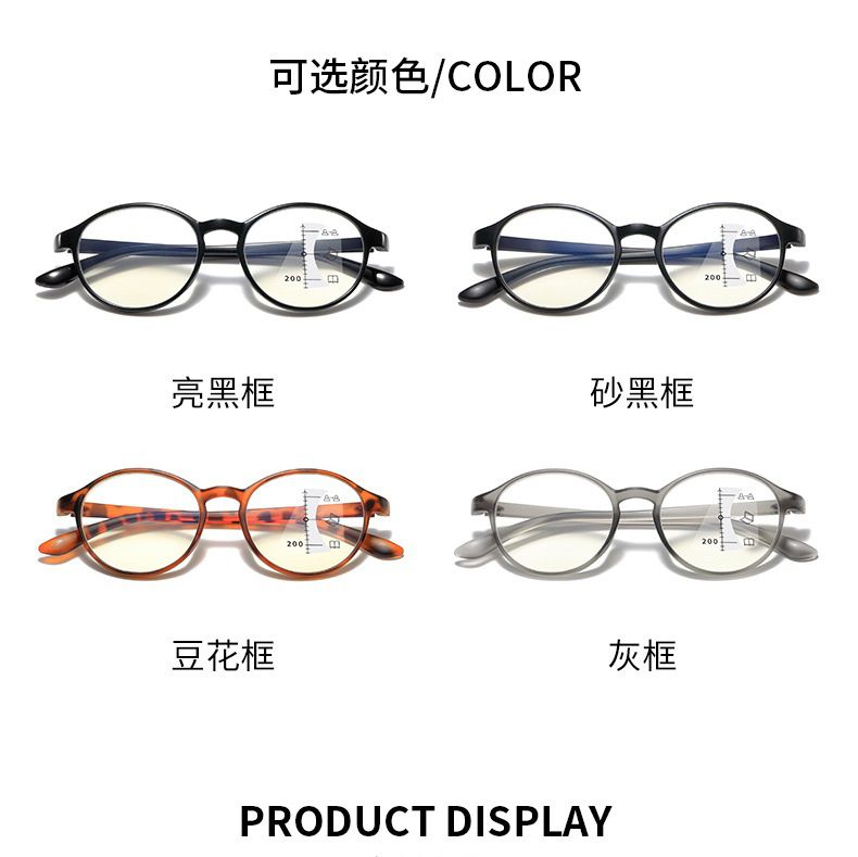 Plastic TR90 glasses for reading, with Blue ray cut protection, multifocal, diopters from +1.00 to +4.00, RMC=62-64, KY5112-2多焦点