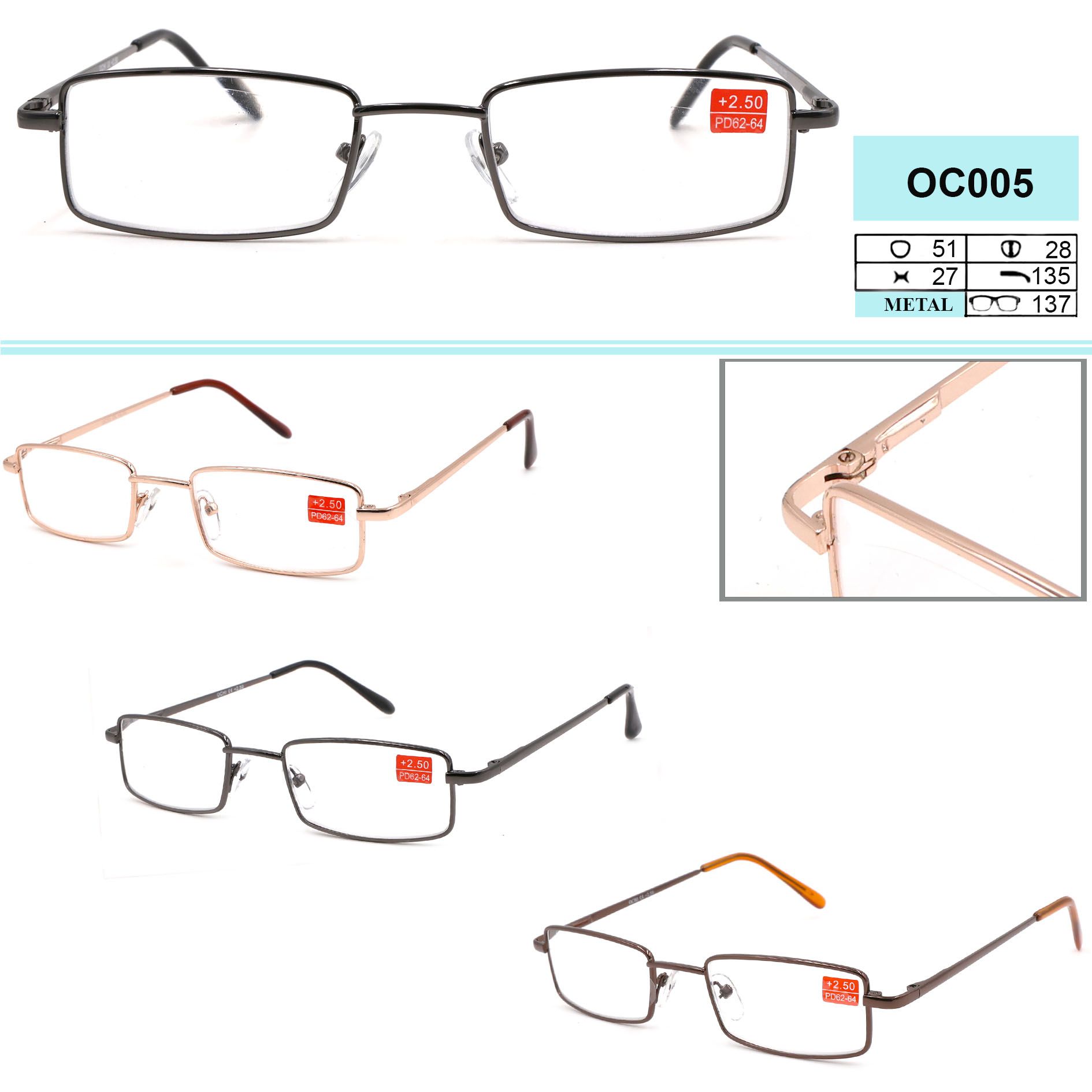 Корригирующие очки лектор в металлической оправе OCHI OC005 диоптрии +1,00 до +4,5, -4,50 до -10,00 РМЦ:62-64 мм с чехлом JM003皮套子