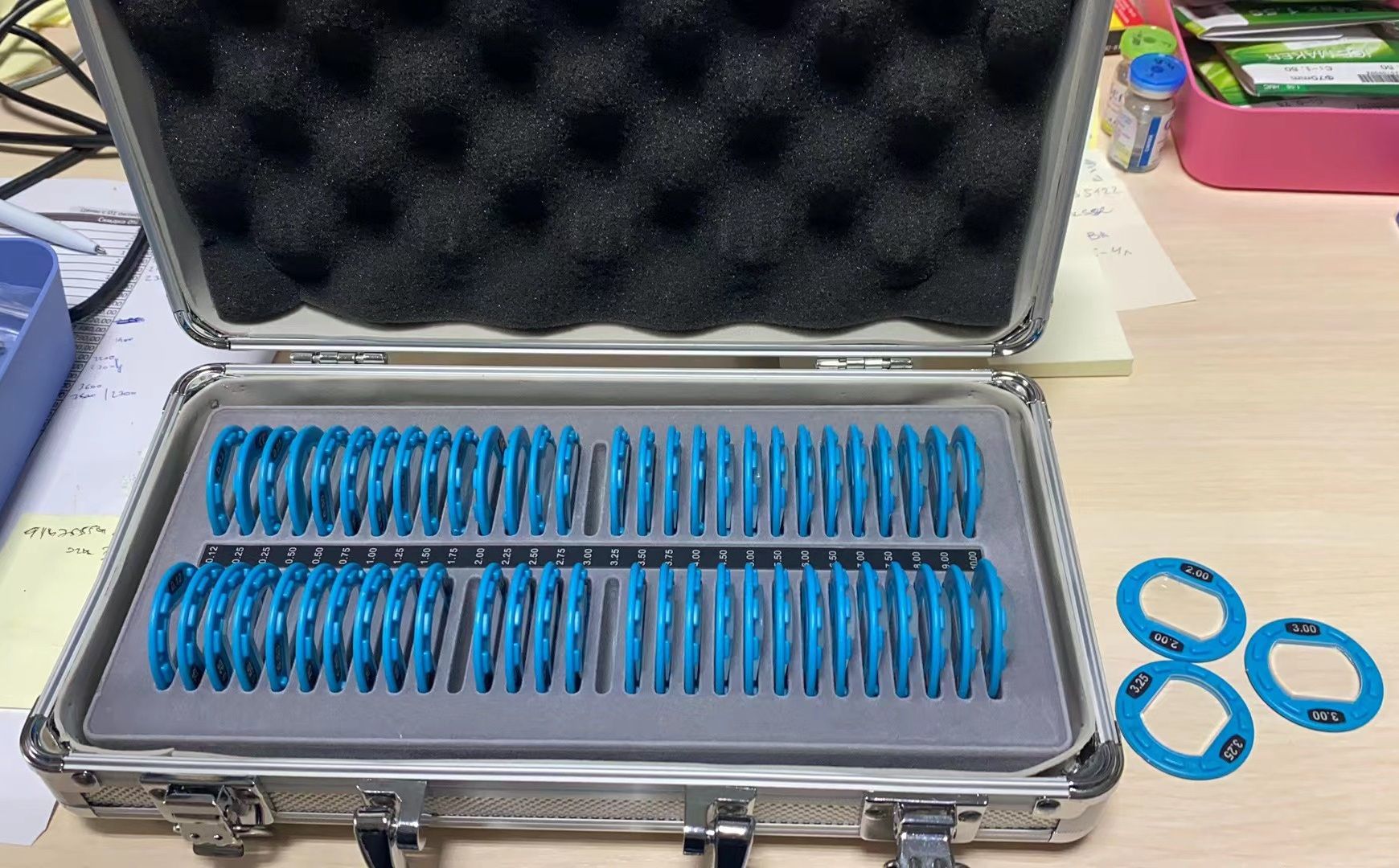 Prism lens set in metal case, 58 pieces, diopters △ from ±0.12 to ±10.00